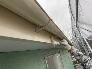 M様邸、破風塗装の様子です。 丁寧に付帯部も塗装していきます。