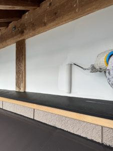 M様邸 小壁下塗り塗装の様子です。 白いお色が映えてとても綺麗です。