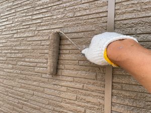 決められた量の塗料を塗っていきます。 仕上げでもある上塗り塗装は、外壁の美しさや塗料の機能性を発揮してくれます!!