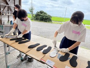 次にゴムのような素材のなかじきにハケで塗ったら、ざらざらとした、素材のなかじきとは違って塗りやすかったです。?