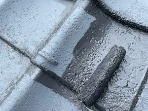 ↑ 屋根 中塗り塗装の様子です。 下塗り材と中塗り材の色の違いが分かりますね✨