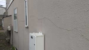 K様邸 外壁塗装前の状態です。 外壁が所々ひび割れ(クラック現象)が起きています?