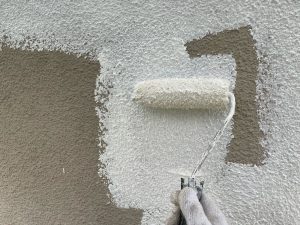 下塗り材は、アステックペイントのエピテックフィラーAEⅡを使用して塗装していきます!! 白色の塗料で、強付着性・柔軟性・下地調整機能の特徴のある塗料になります?