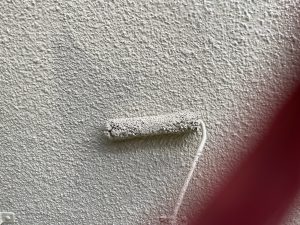 K様邸 外壁上塗り塗装の様子です。 中塗り材と同じ材料を使用して丁寧に塗装していきます!!