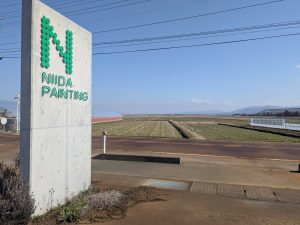 のどかな場所にある弊社は田んぼの奥には山々が、