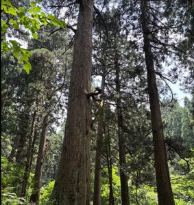 ちょっと見えにくいですが杉の真ん中あたりに龍神様が!