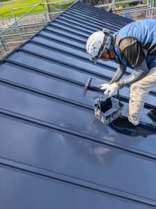 連日屋根塗装を行っておりますが、本日は中塗り作業を行っております。