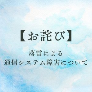8月6日(水)より落雷による通信障害が発生し、現在電話・FAXからのご連絡がいただけない状況となっております。