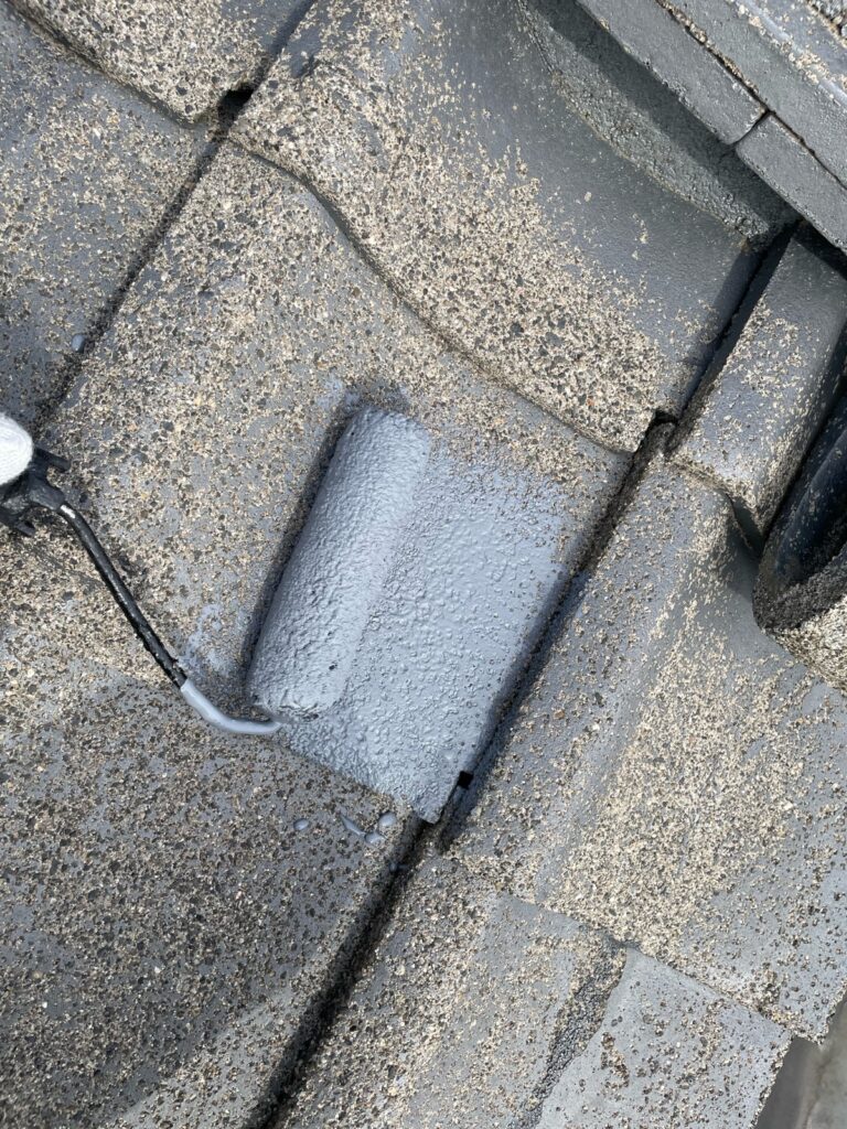 まず、新発田市のA様邸では、屋根塗装の屋根下塗りを行いました。屋根は常に紫外線や雨風にさらされるため、下地処理と下塗りは非常に重要な工程です。塗料が持つ本来の性能を最大限に引き出すよう、丁寧な作業を心がけています。使用する塗料は、お客様のお住まいの状況やご希望に合わせて最適なものを選定し、長持ちする美しい仕上がりを目指しています。