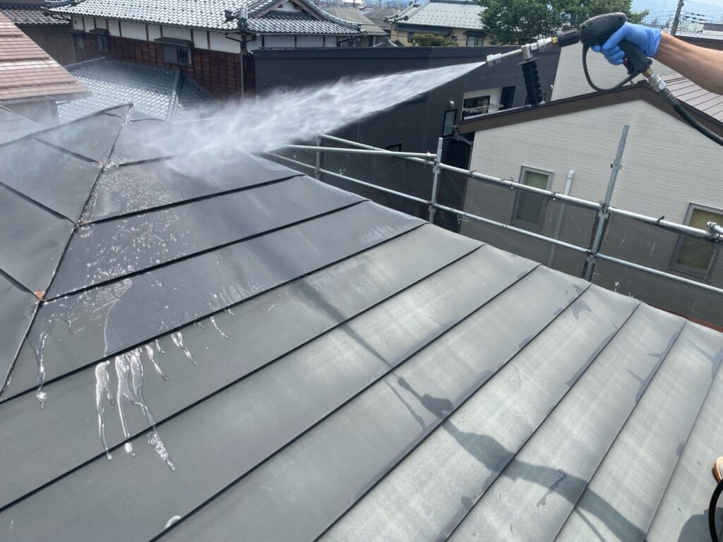 新発田市のN様邸では、屋根塗装前の高圧洗浄作業を行いました。屋根は常に雨風や紫外線にさらされており、コケやカビ、汚れが付着しやすい場所です。これらの汚れをしっかりと除去しないまま塗装をしてしまうと、塗料が密着せず、せっかくの屋根塗装も長持ちしません。当社の職人は、専用の高圧洗浄機を使い、屋根の隅々まで丁寧に洗い流していきます。この下地処理が、美しい仕上がりと耐久性を左右する非常に重要な工程なのです。N様邸の屋根も、長年の汚れがすっきりと落ち、まるで新築のように輝きを取り戻していました。