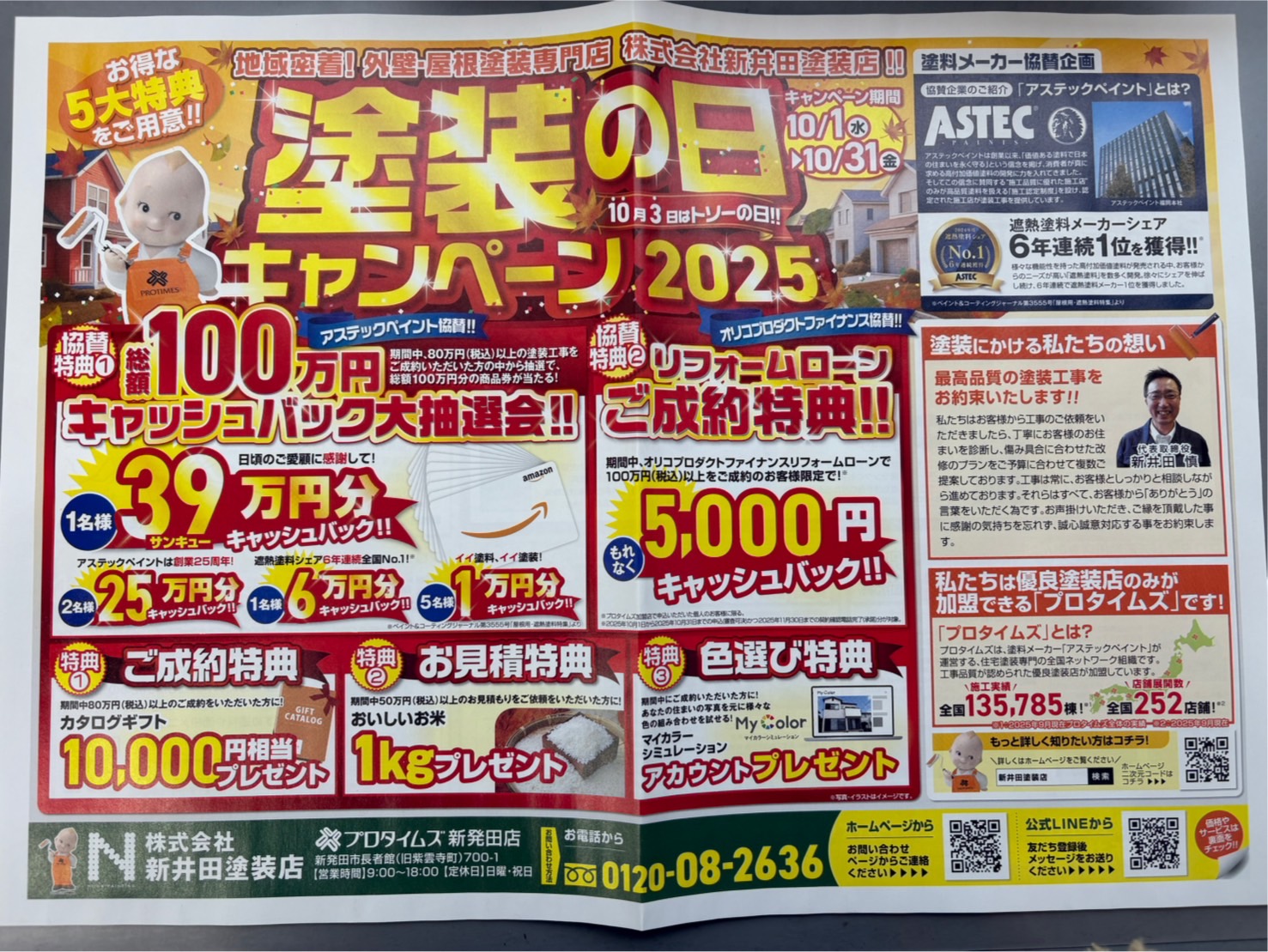 おはようございます。外壁・屋根塗装専門店 ㈱新井田塗装店 プロタイムズ新発田店の須貝です。