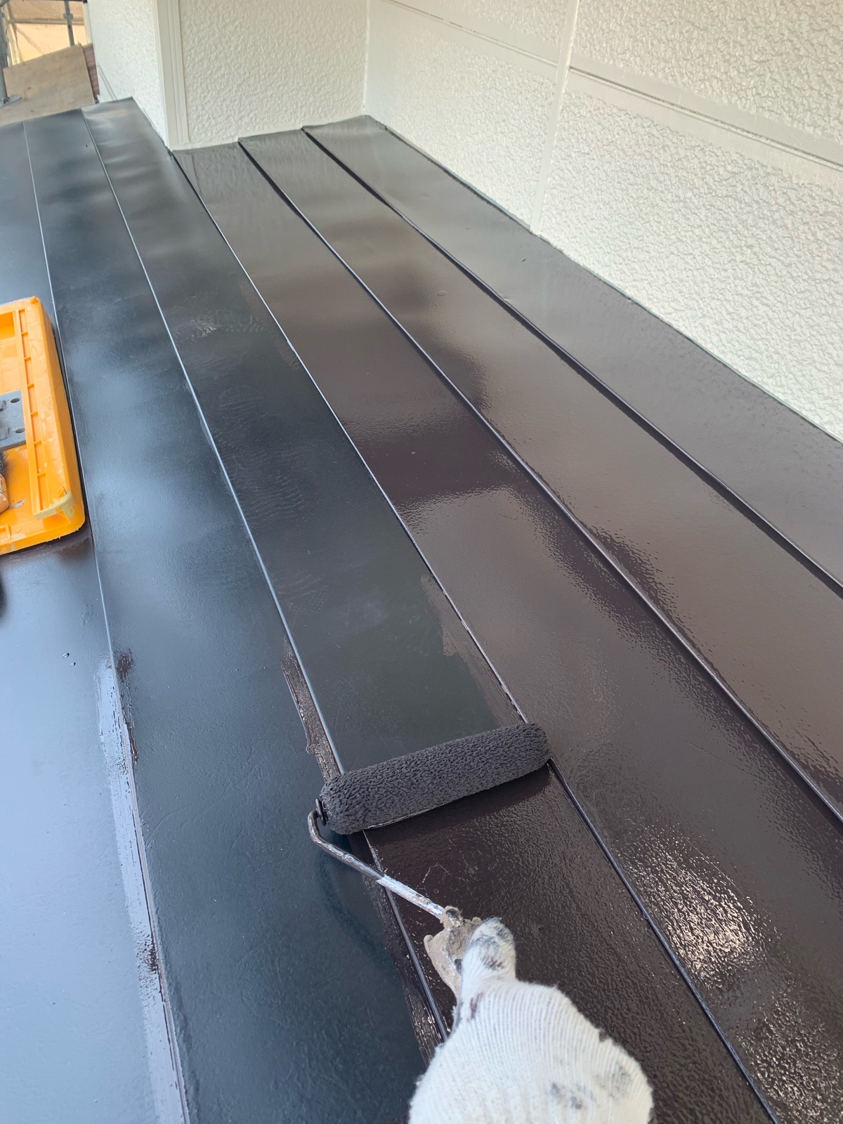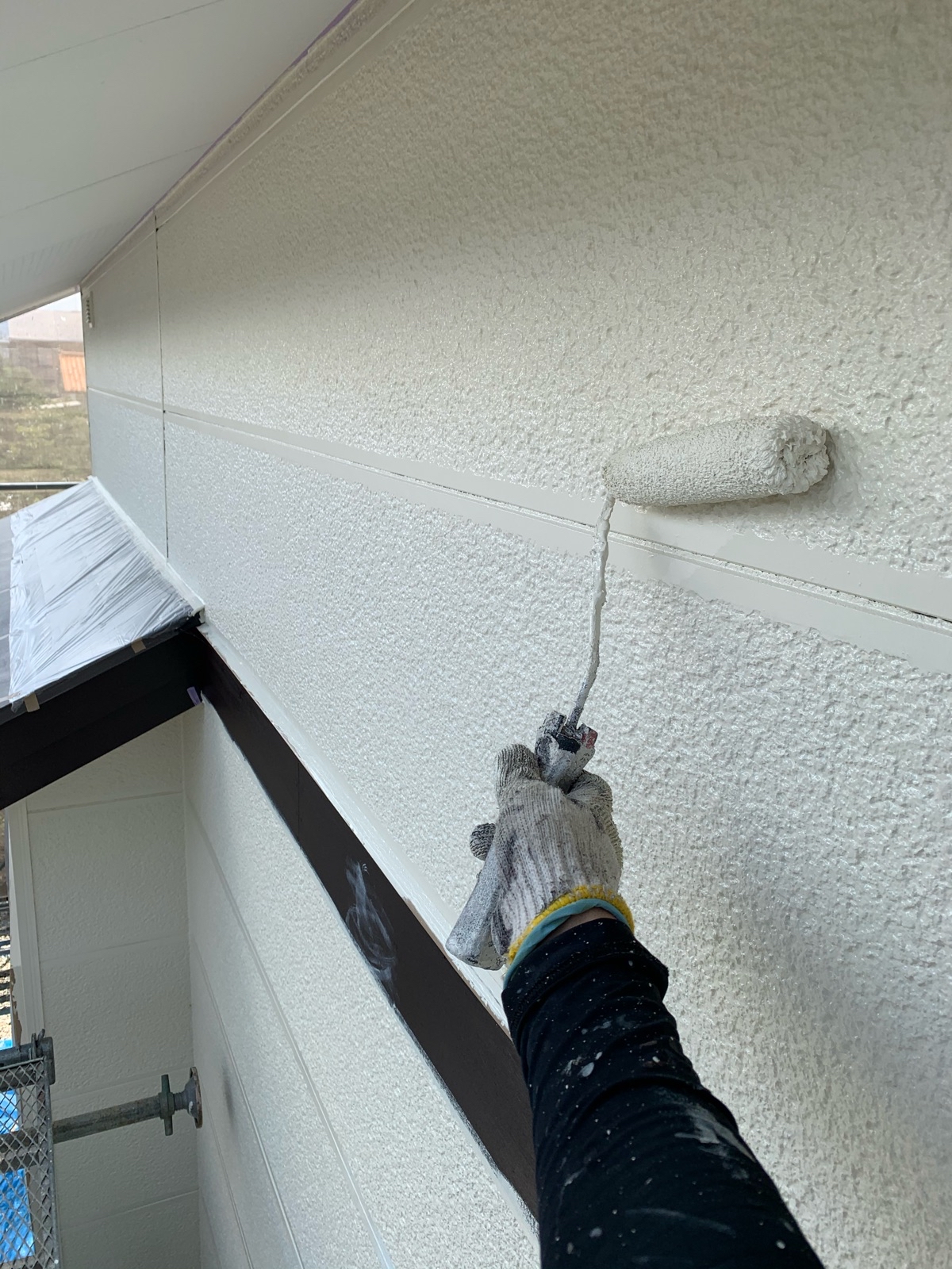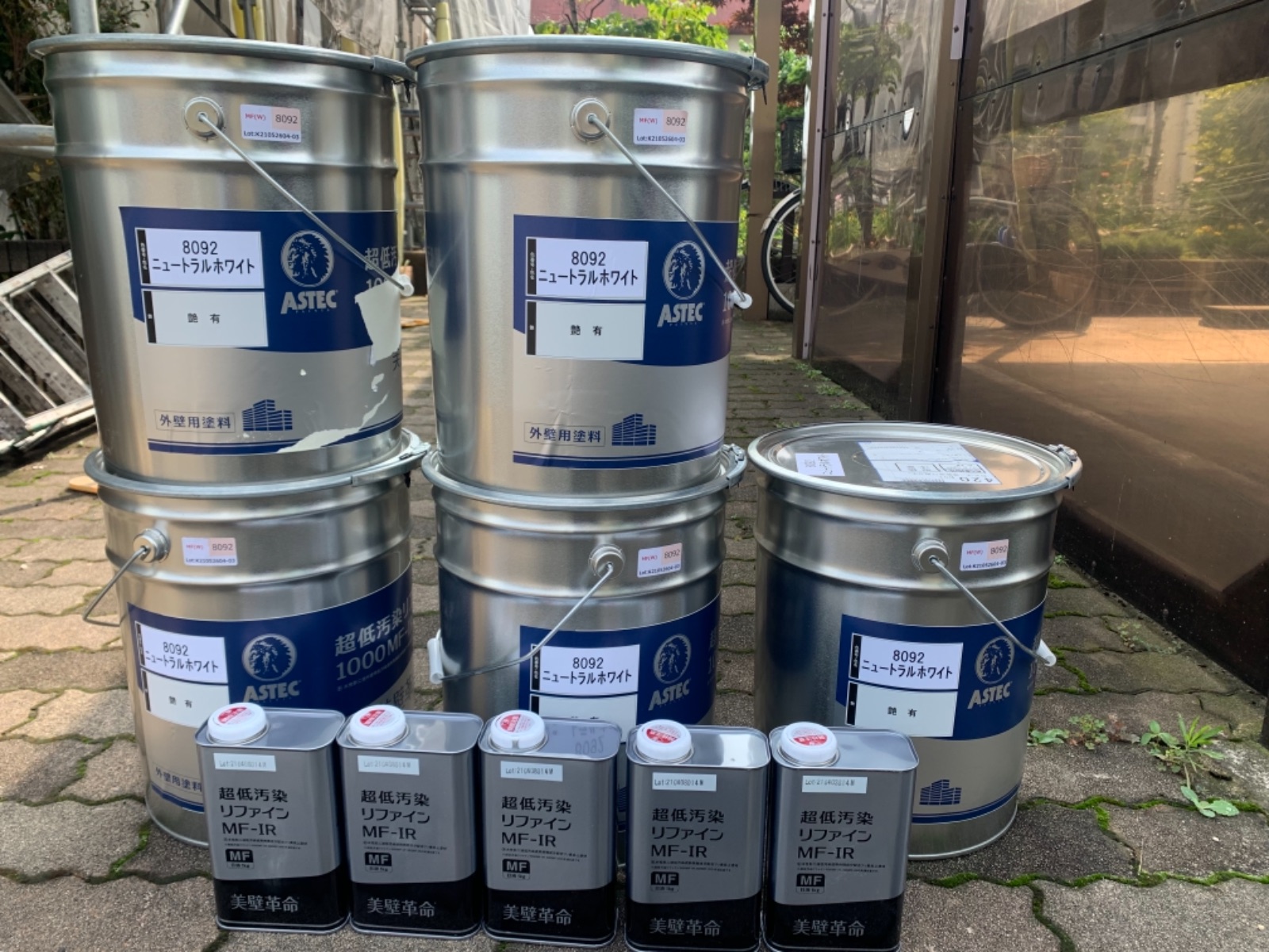 完了:上塗り材は超低汚染リファイン1000MF-IRを使用しました。