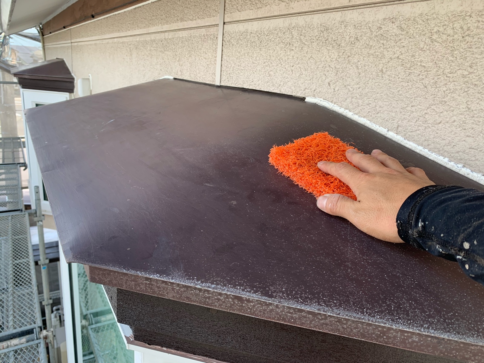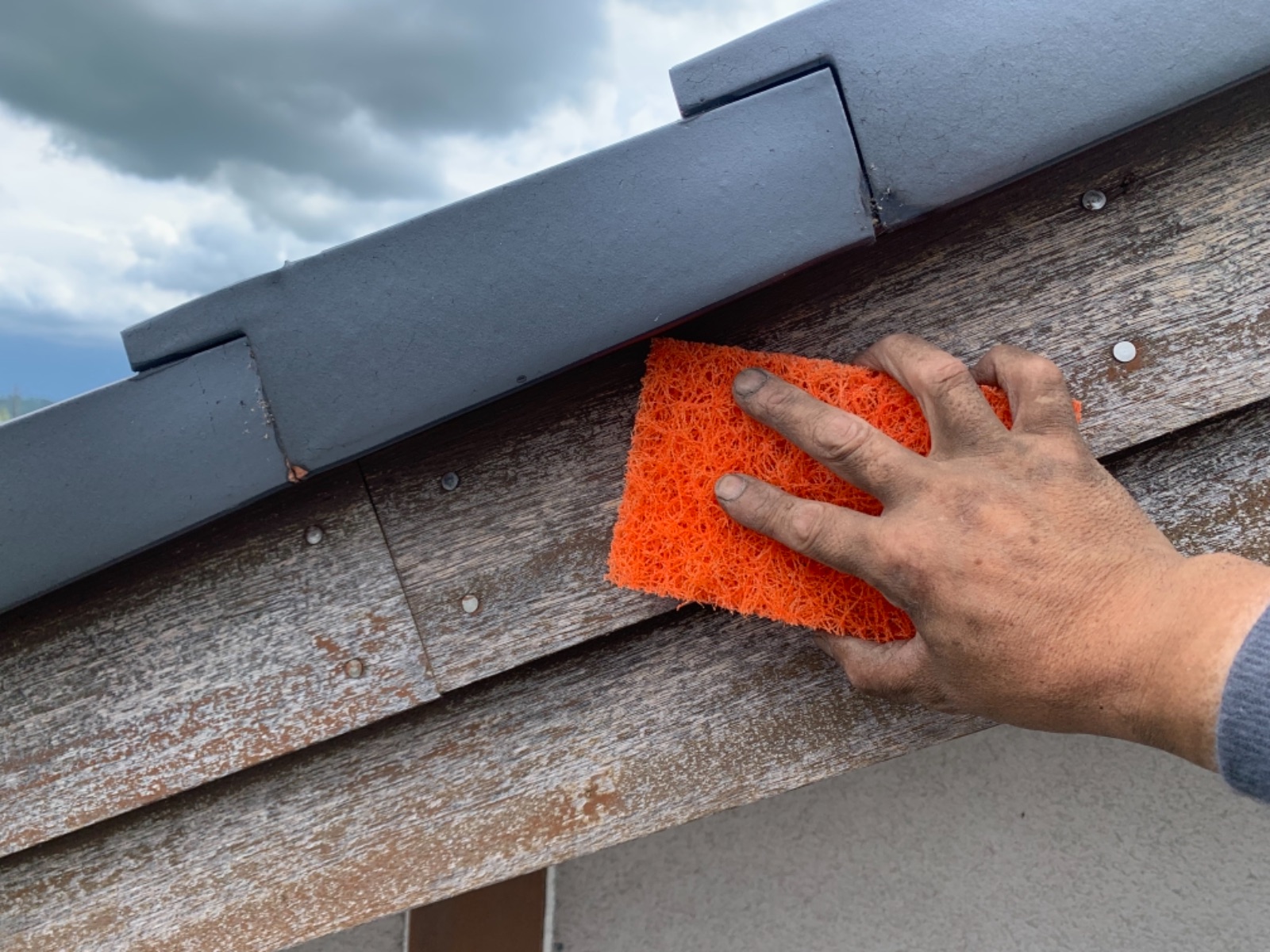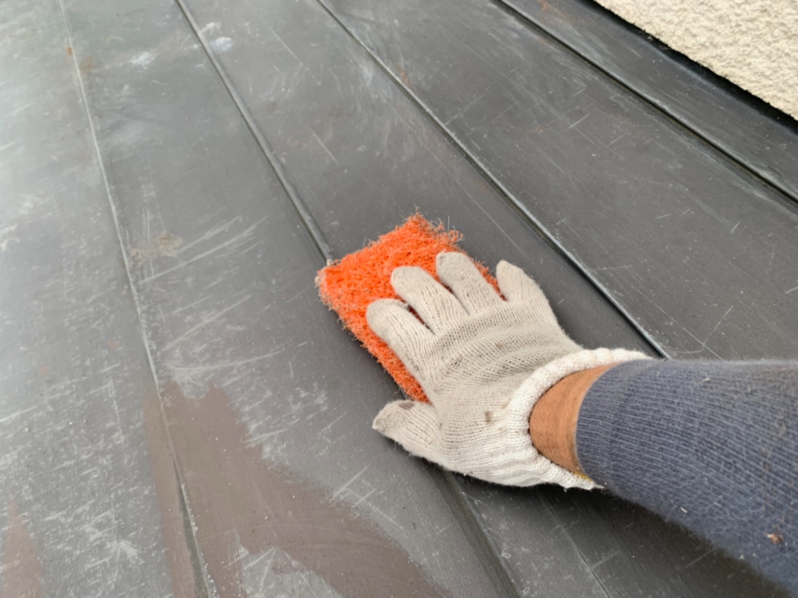高圧洗浄作業中:古い塗膜や汚れなどを綺麗に洗います。