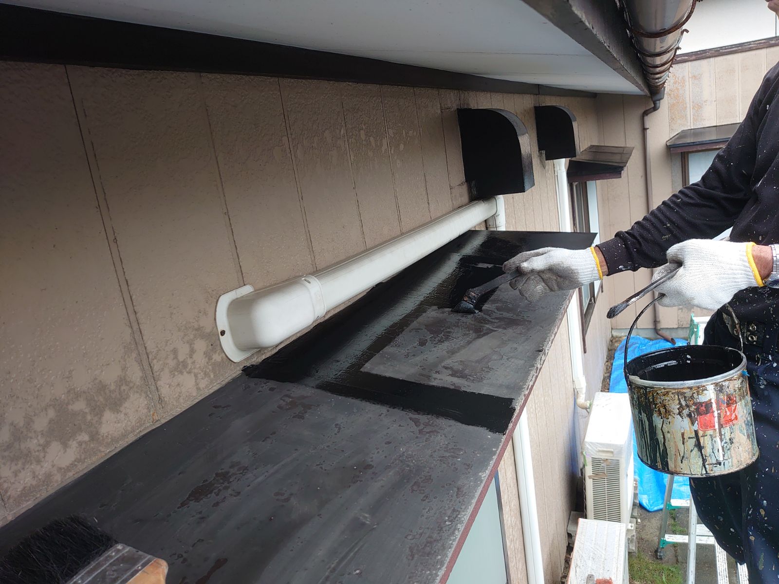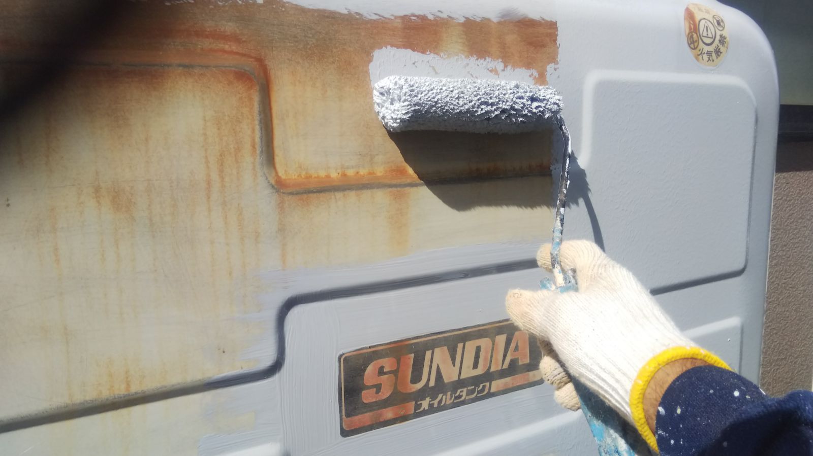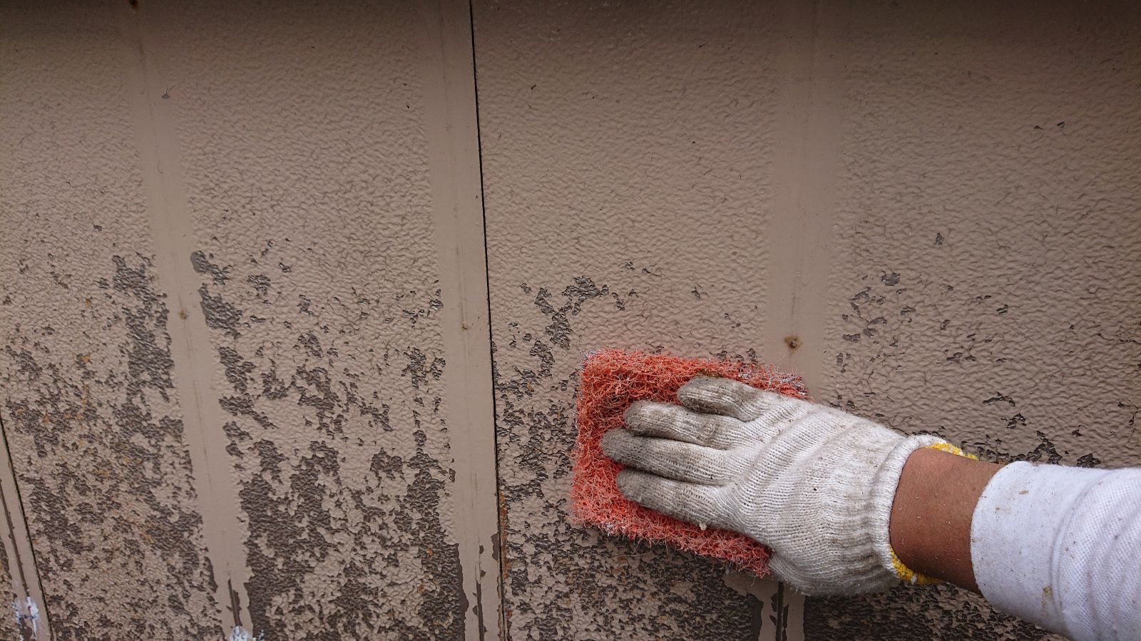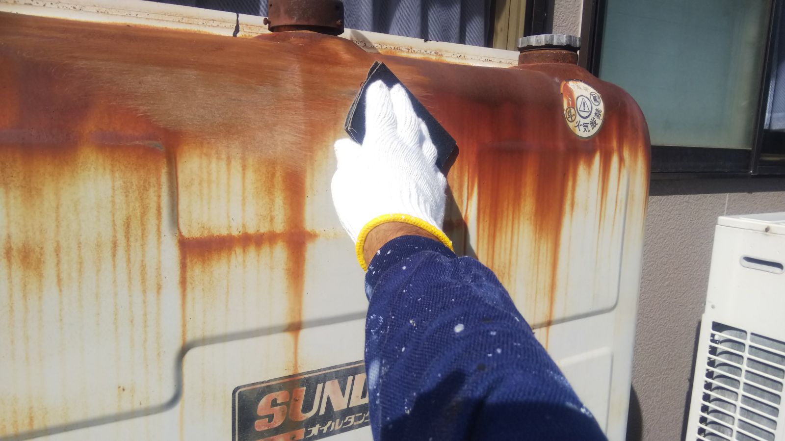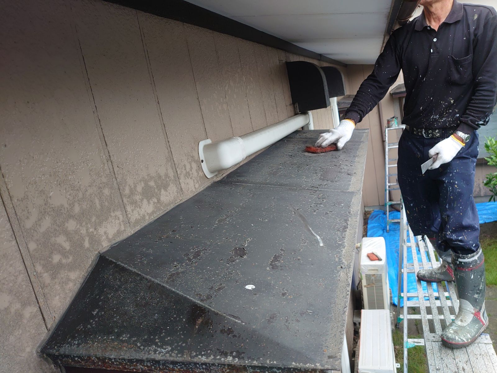 ケレン作業中:錆や洗浄で落としきれなかった汚れなどを落としていきます。
