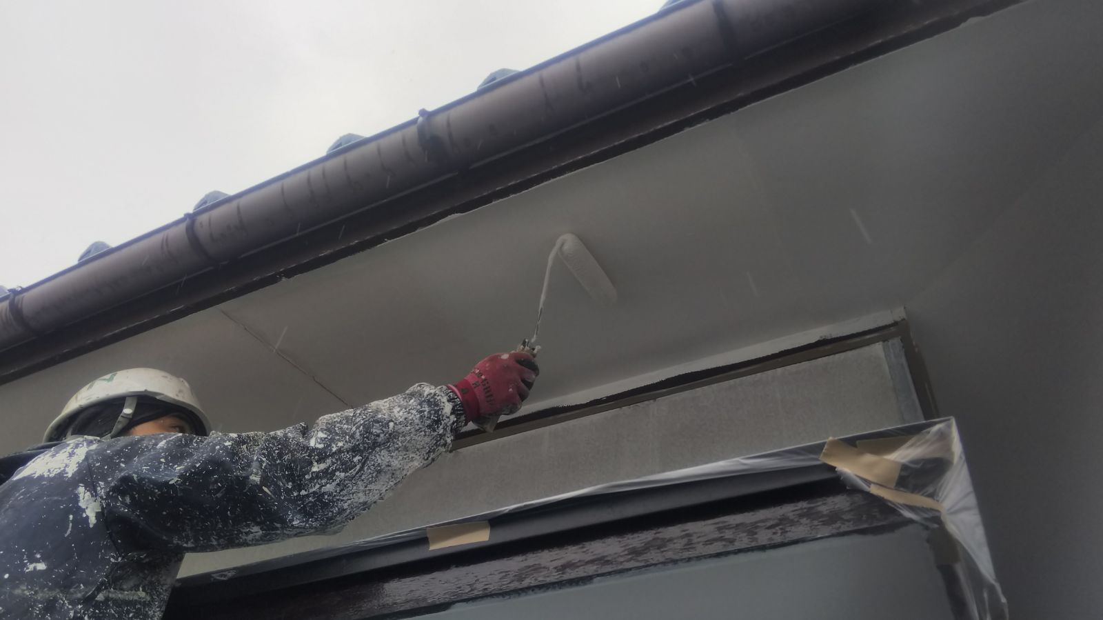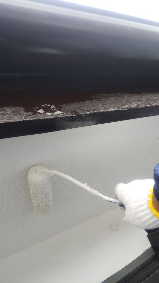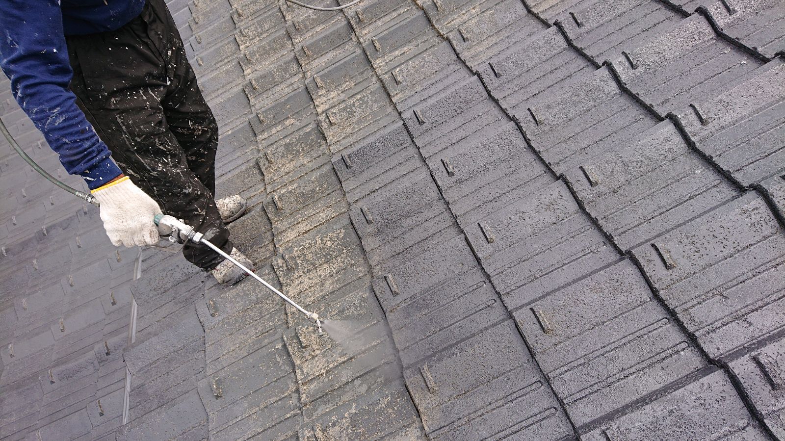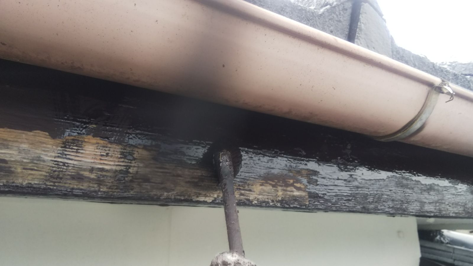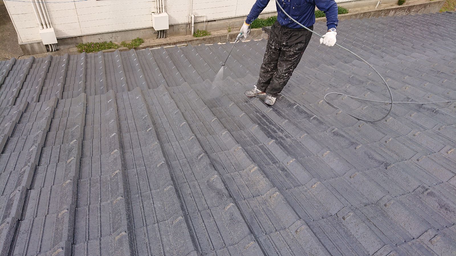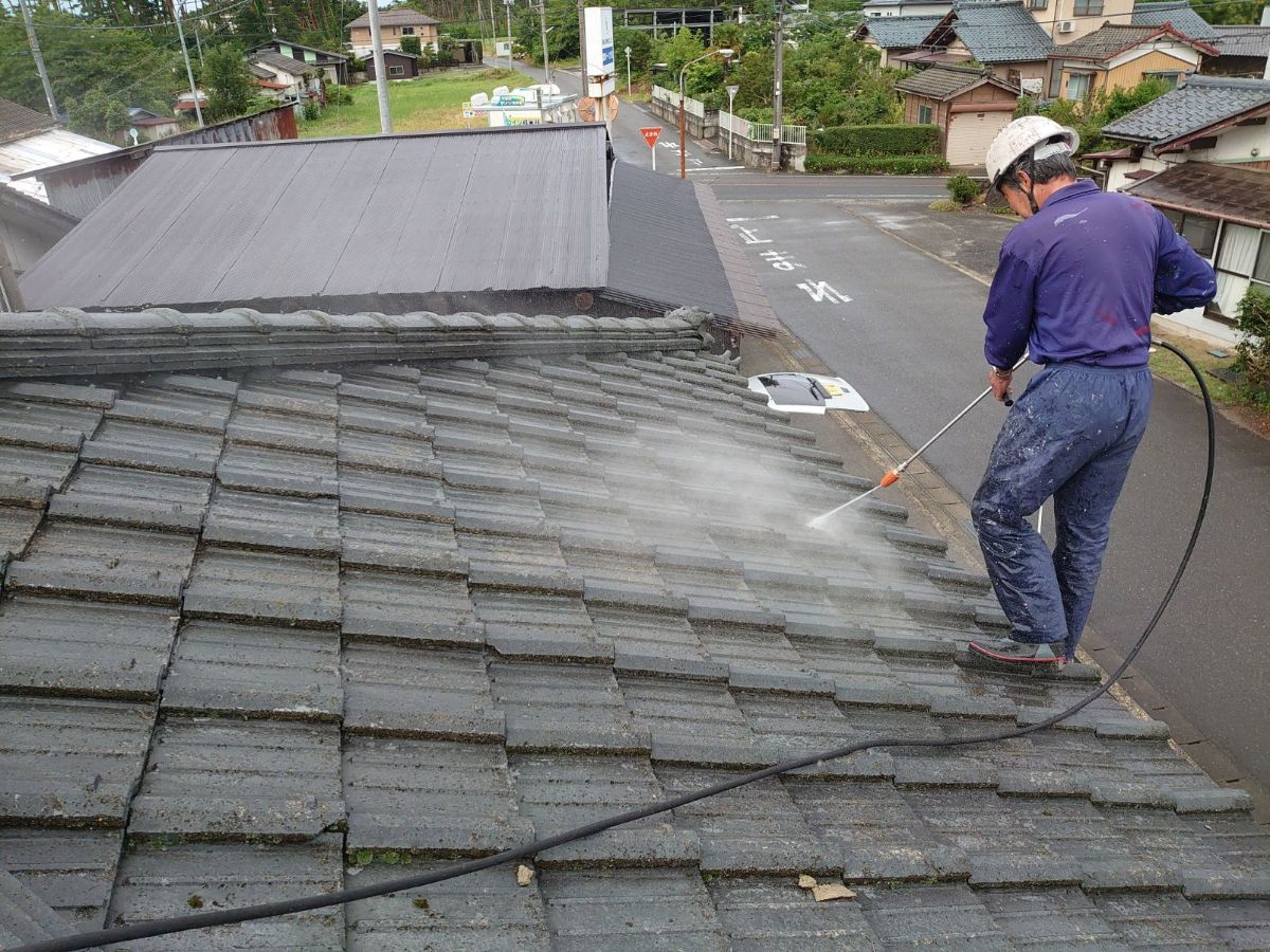 高圧洗浄作業中:古い塗膜や汚れなどを綺麗に洗います。