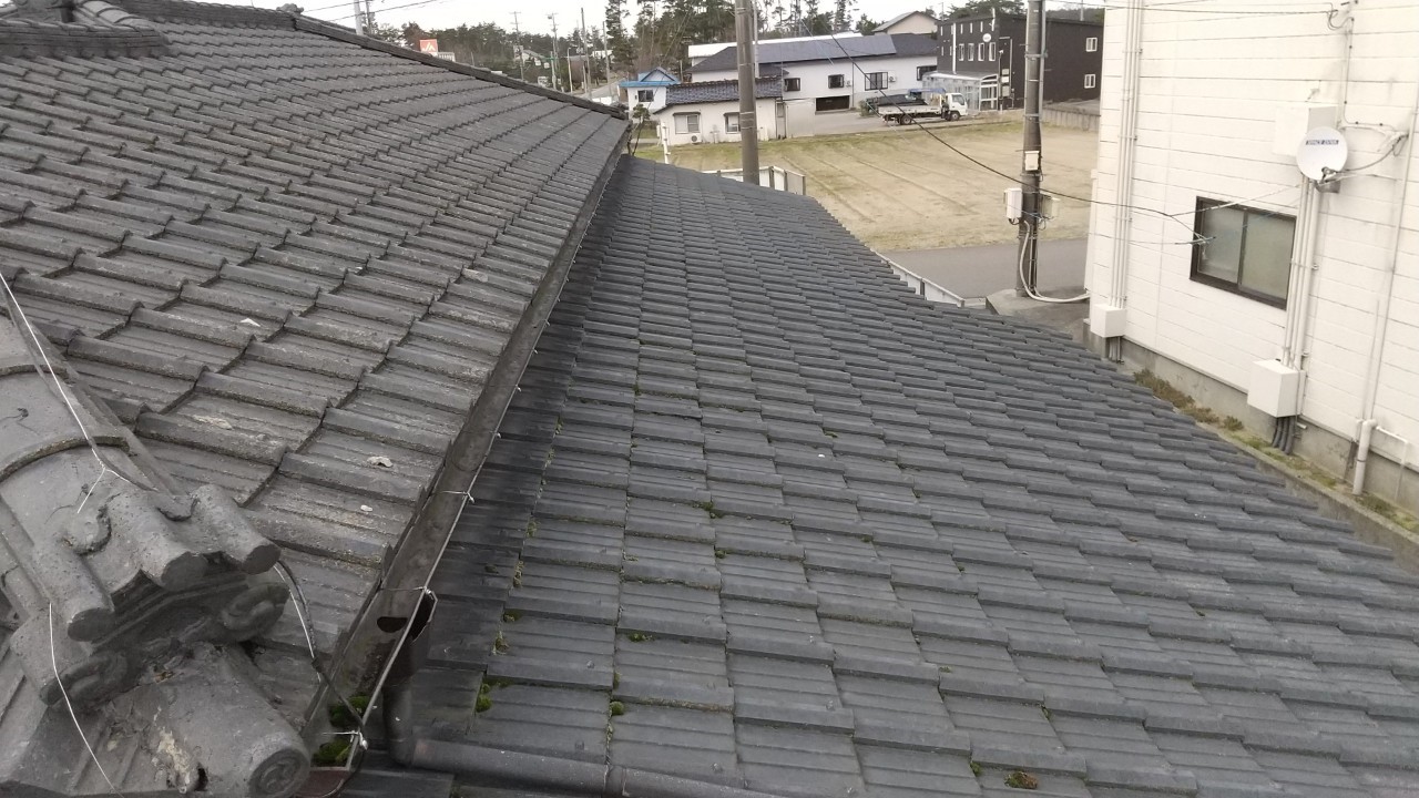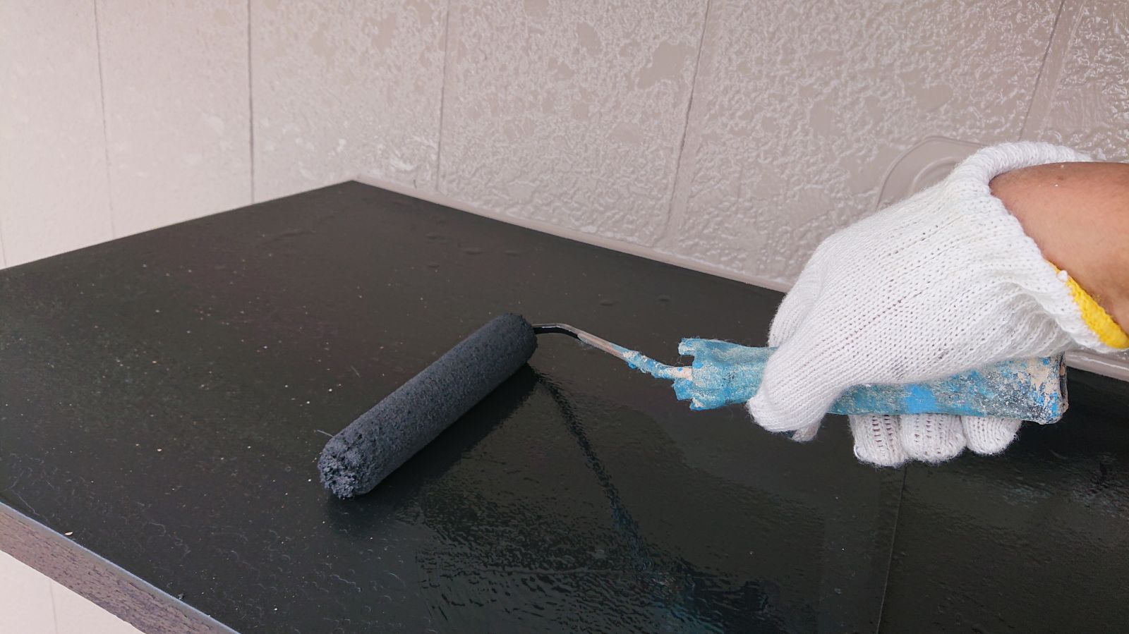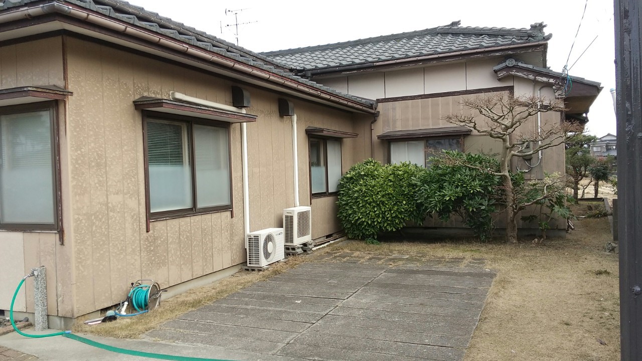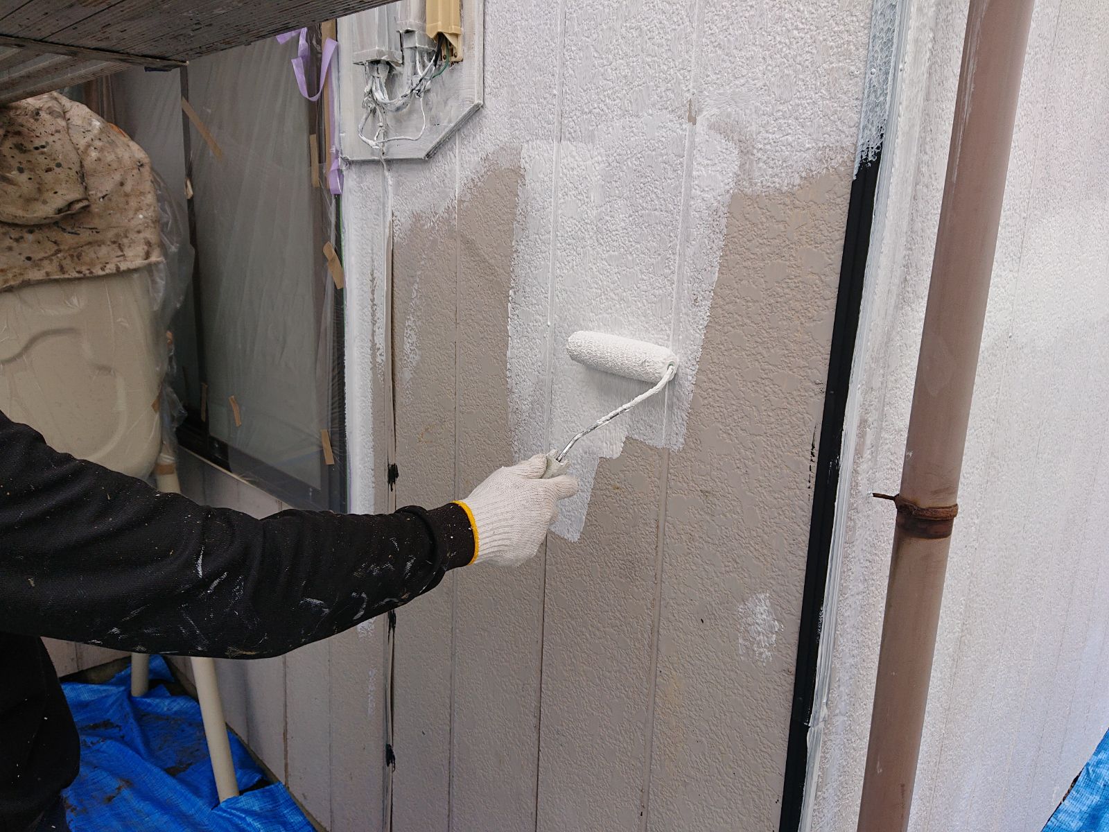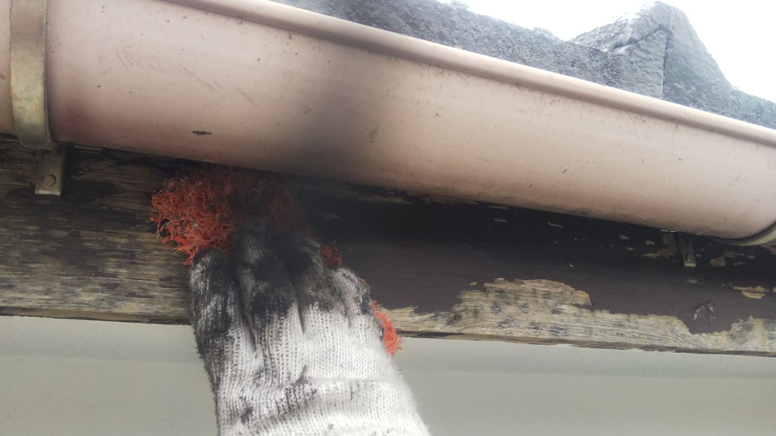 高圧洗浄作業中:古い塗膜や汚れなどを綺麗に洗います。