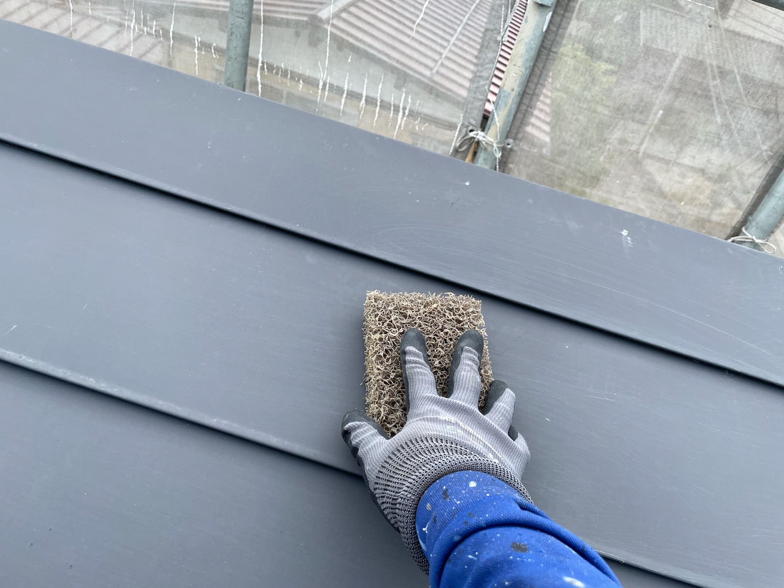 ケレン作業中:錆や洗浄で落としきれなかった汚れなどを落としていきます。