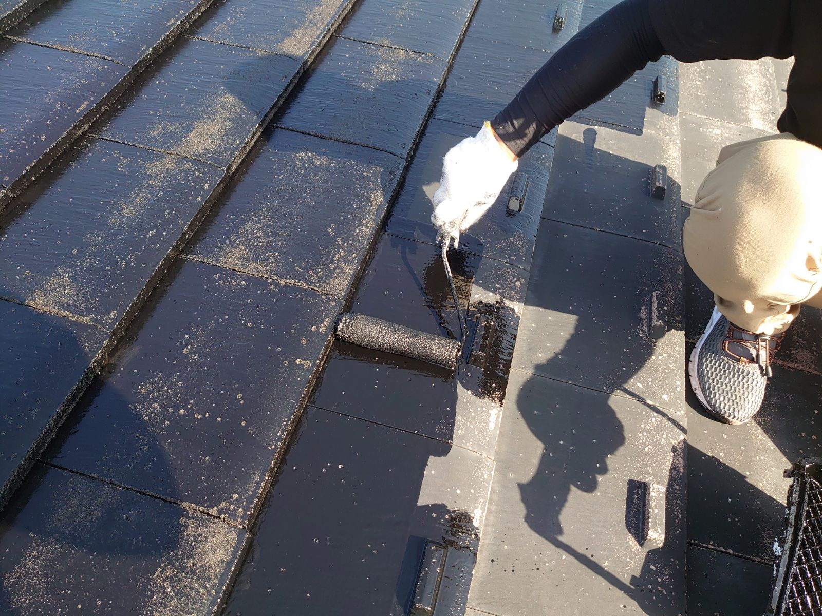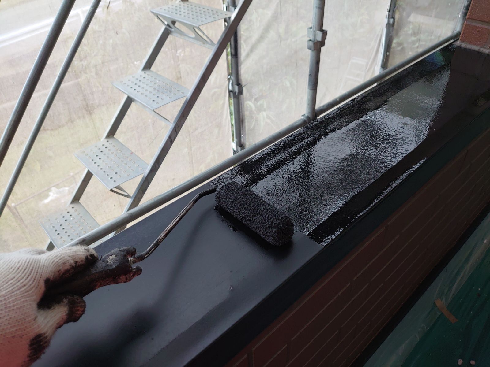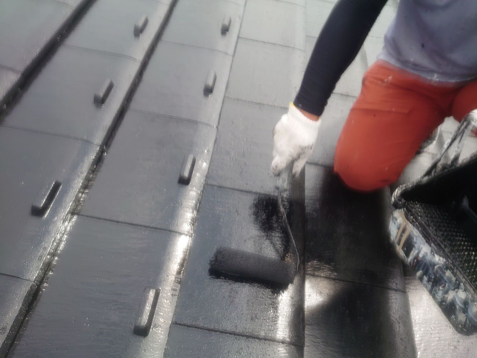 完了:上塗り材はシリコンREVO1000を使用しました。