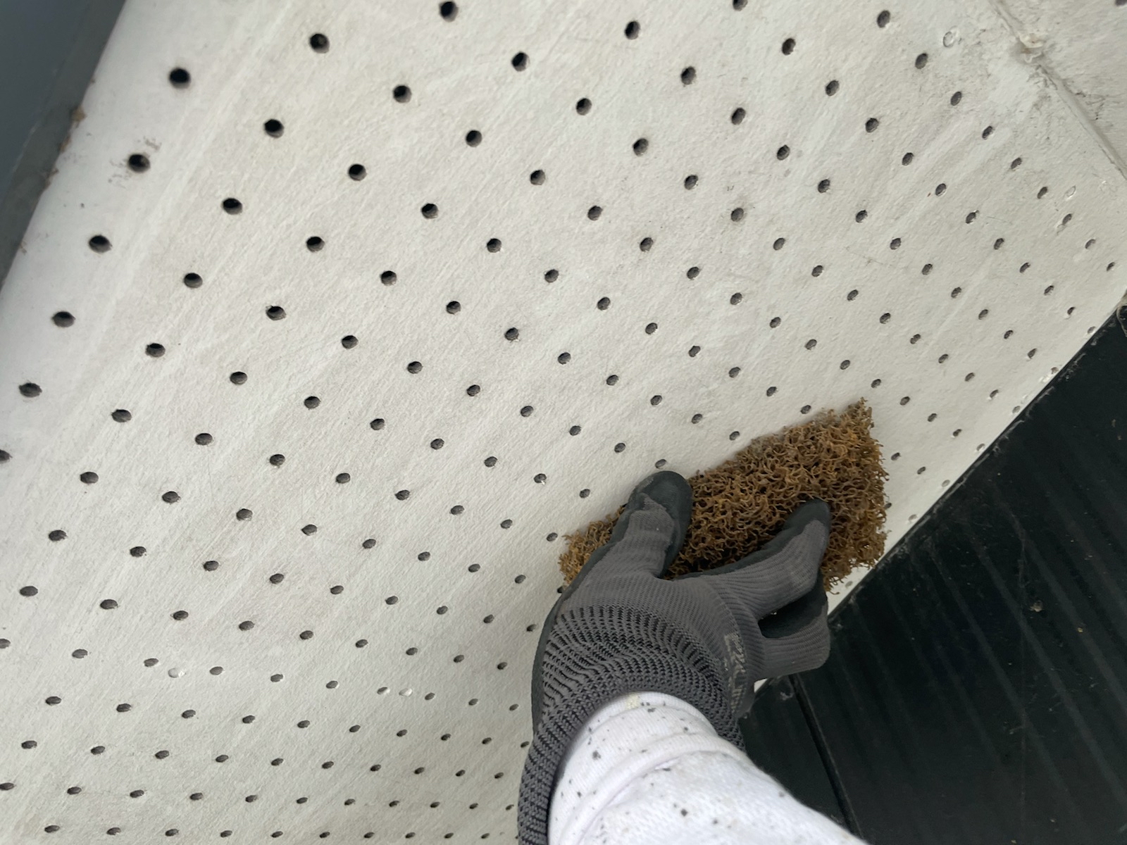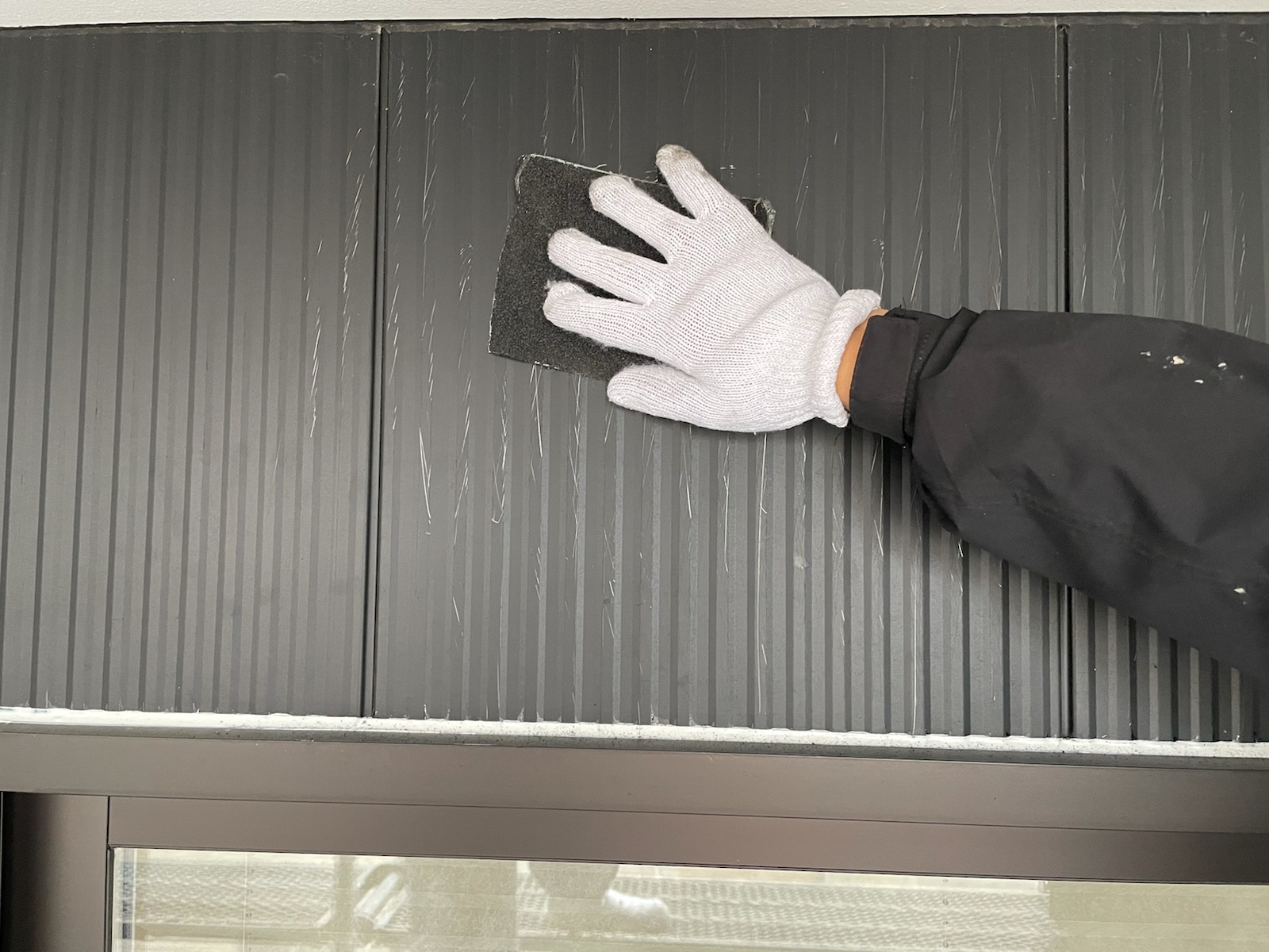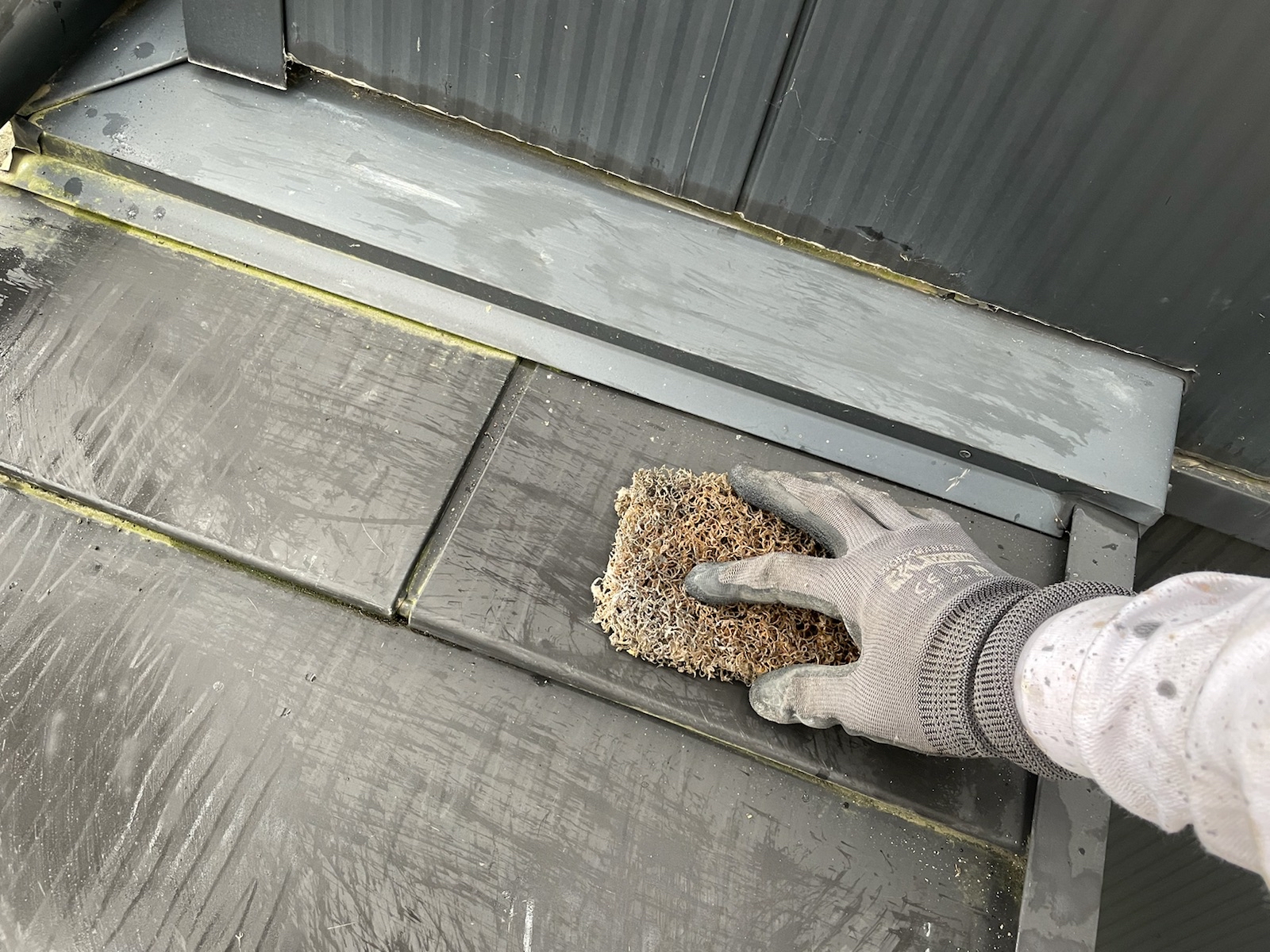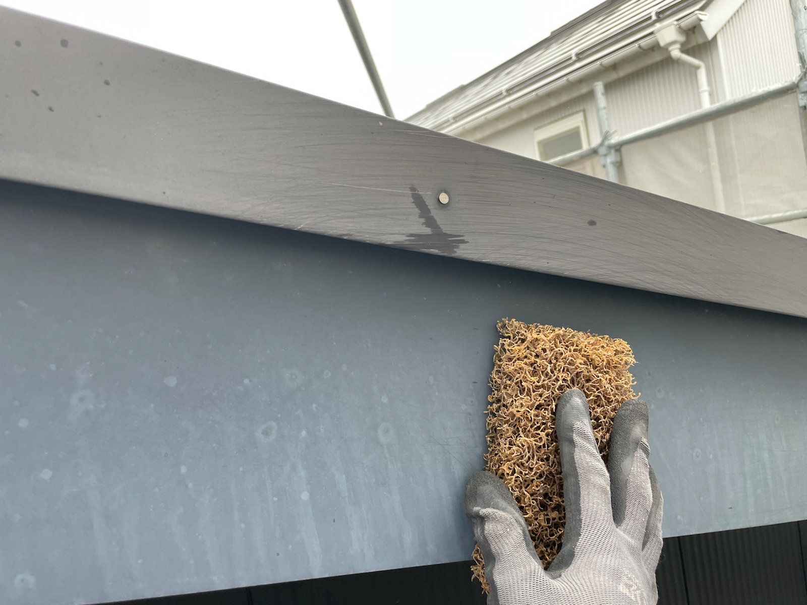 ケレン作業中:錆や洗浄で落としきれなかった汚れなどを落としていきます。