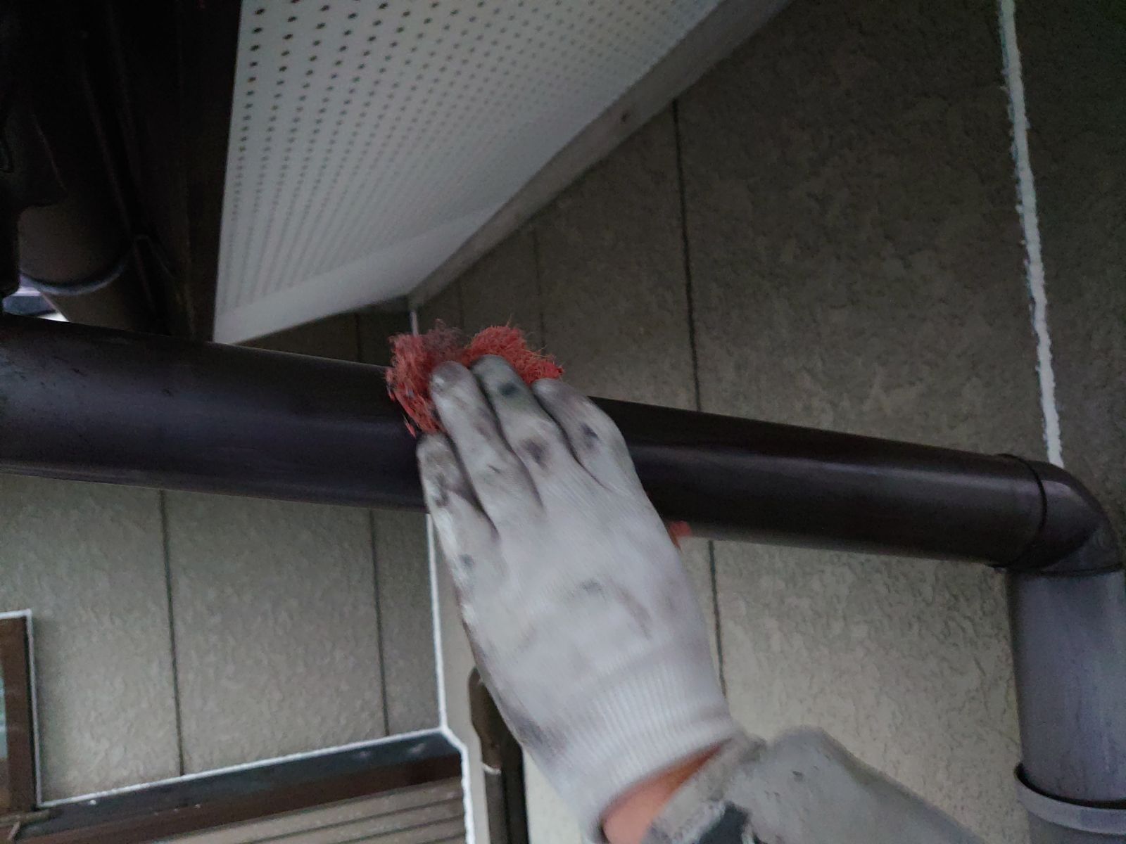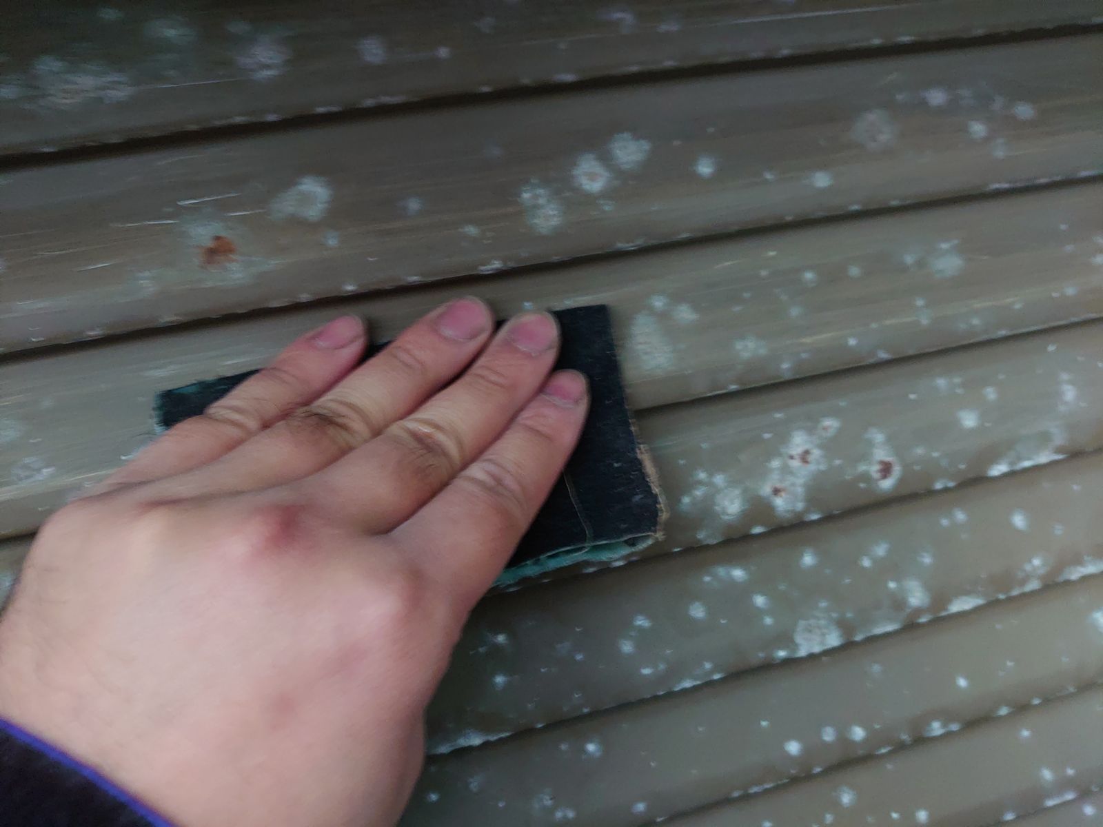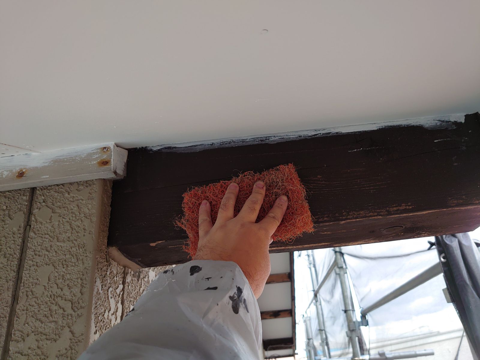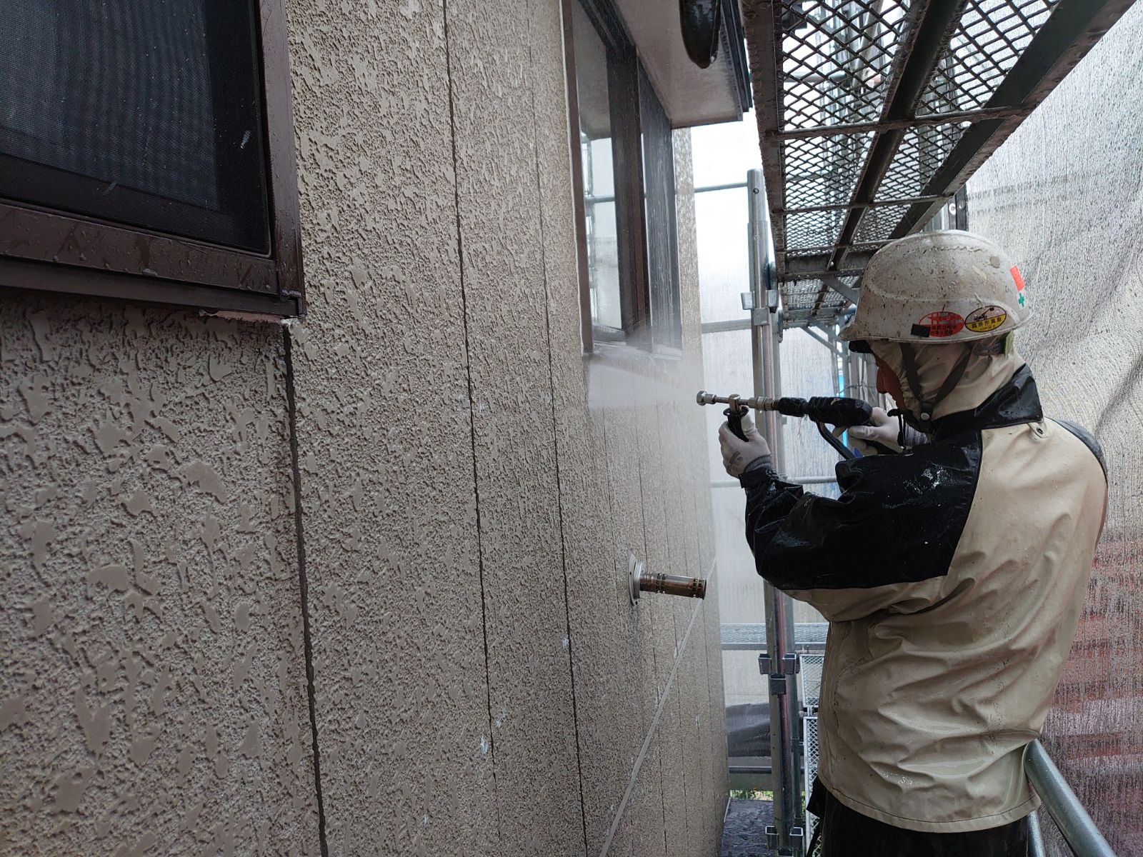 高圧洗浄作業中:古い塗膜や汚れなどを綺麗に洗います。