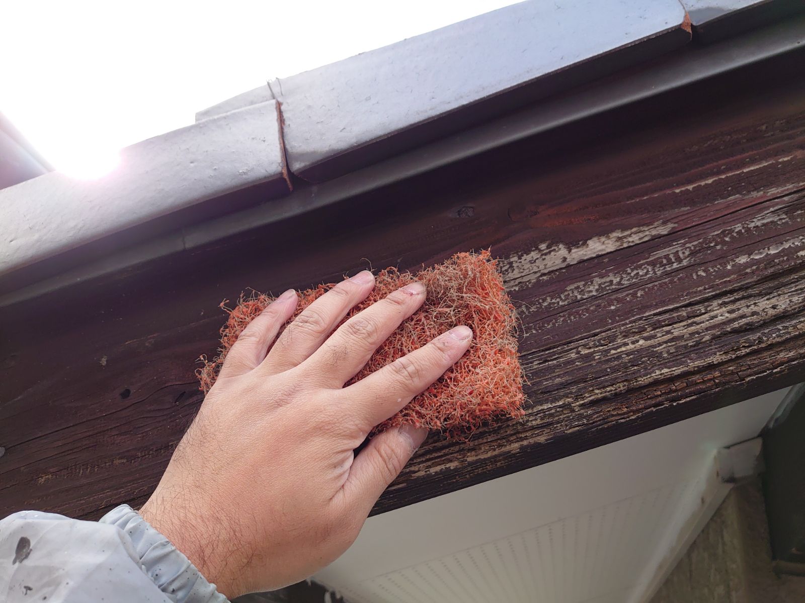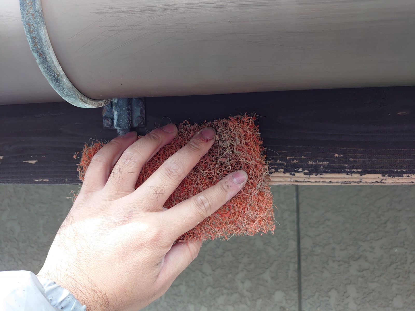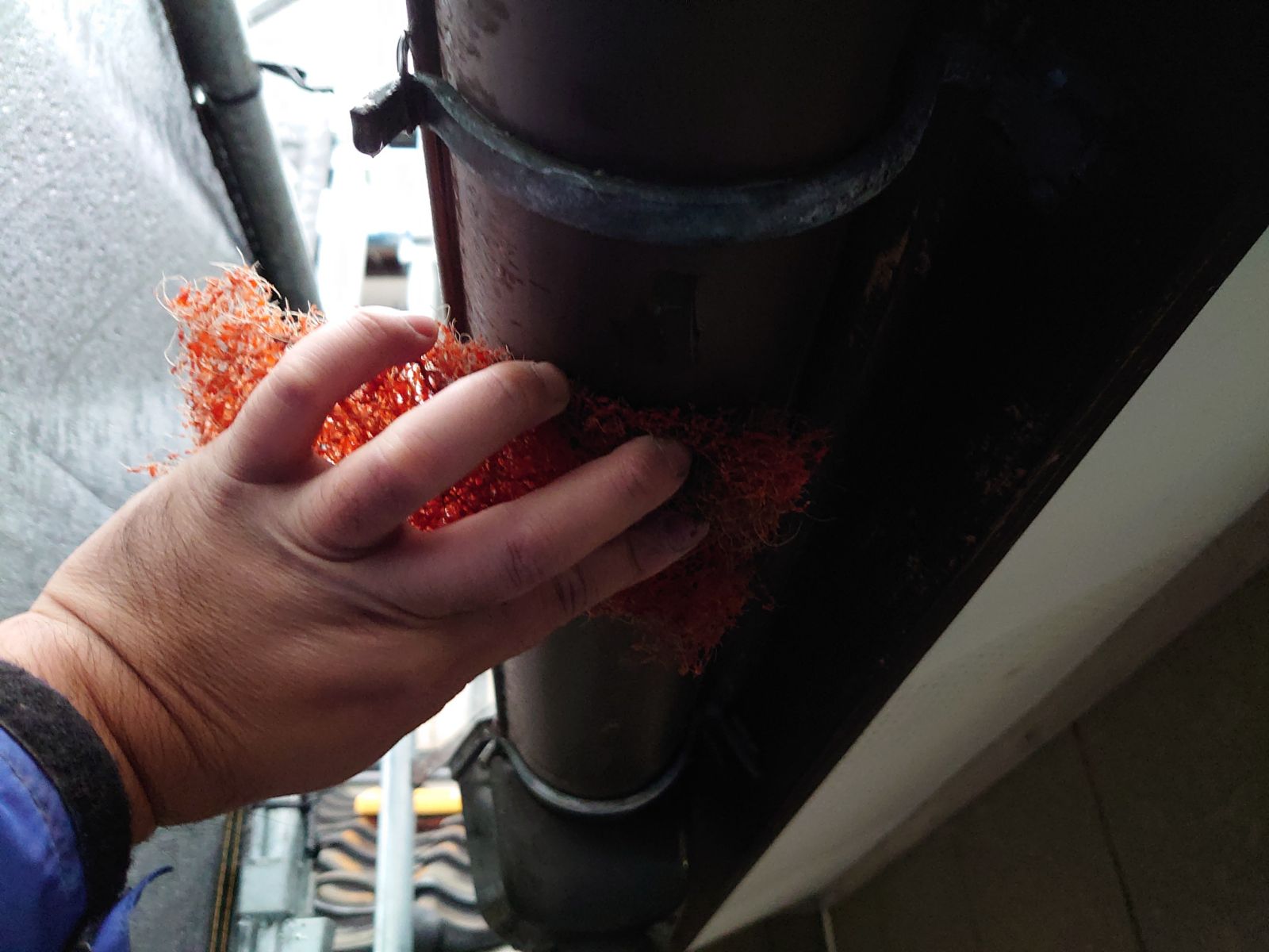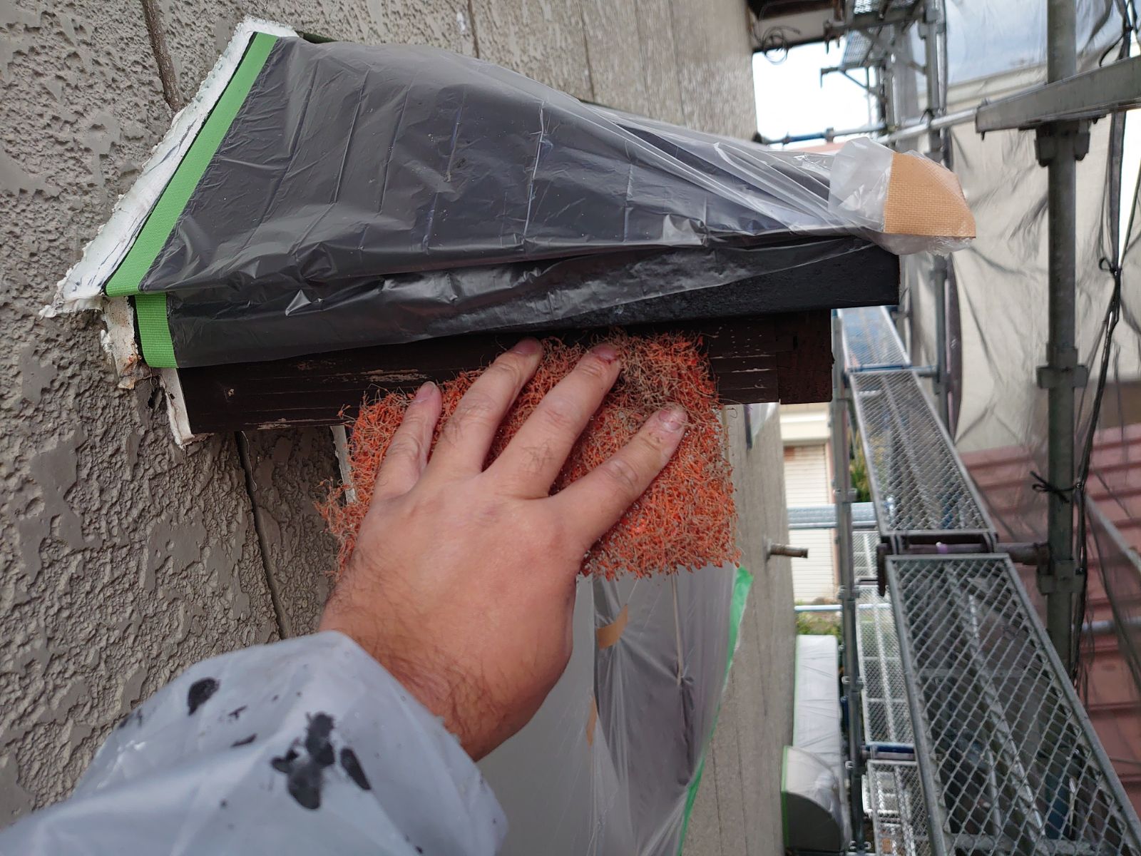 高圧洗浄作業中:古い塗膜や汚れなどを綺麗に洗います。