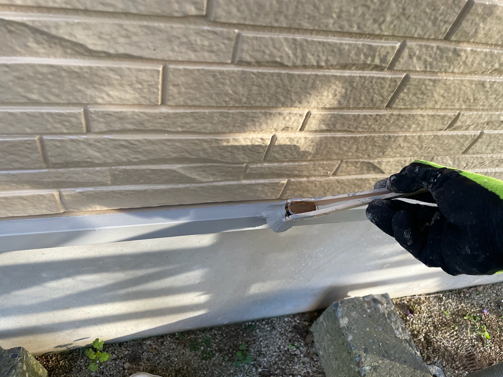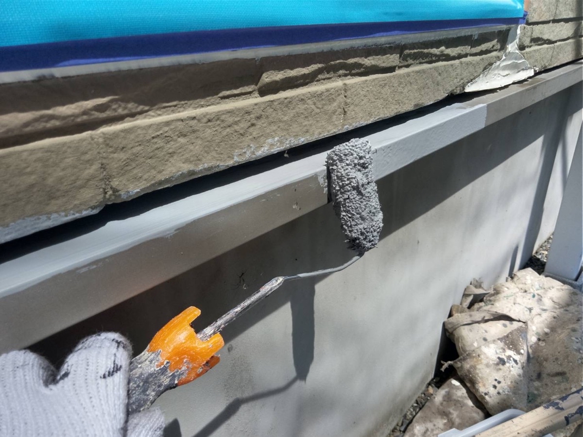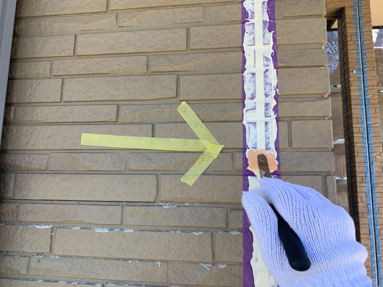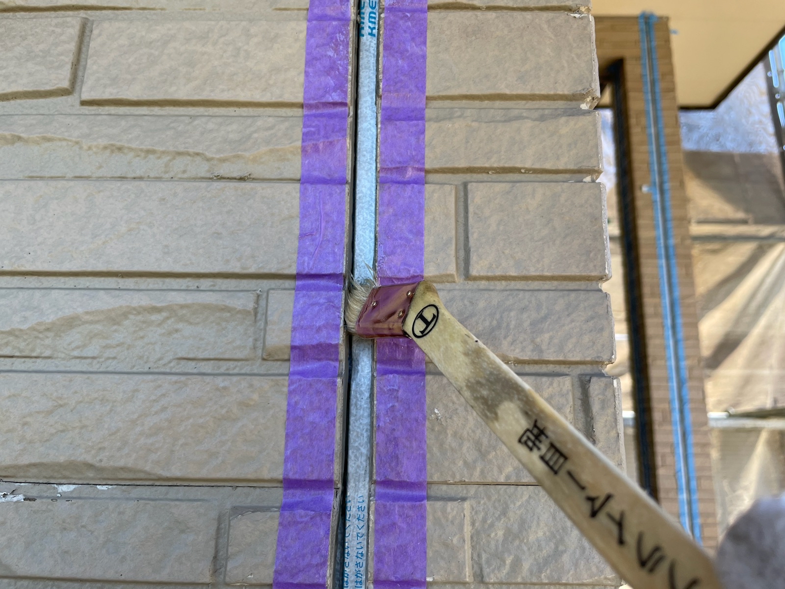 外壁:下地材とシーリング材の密着性を良くするためにプライマーを塗布します。