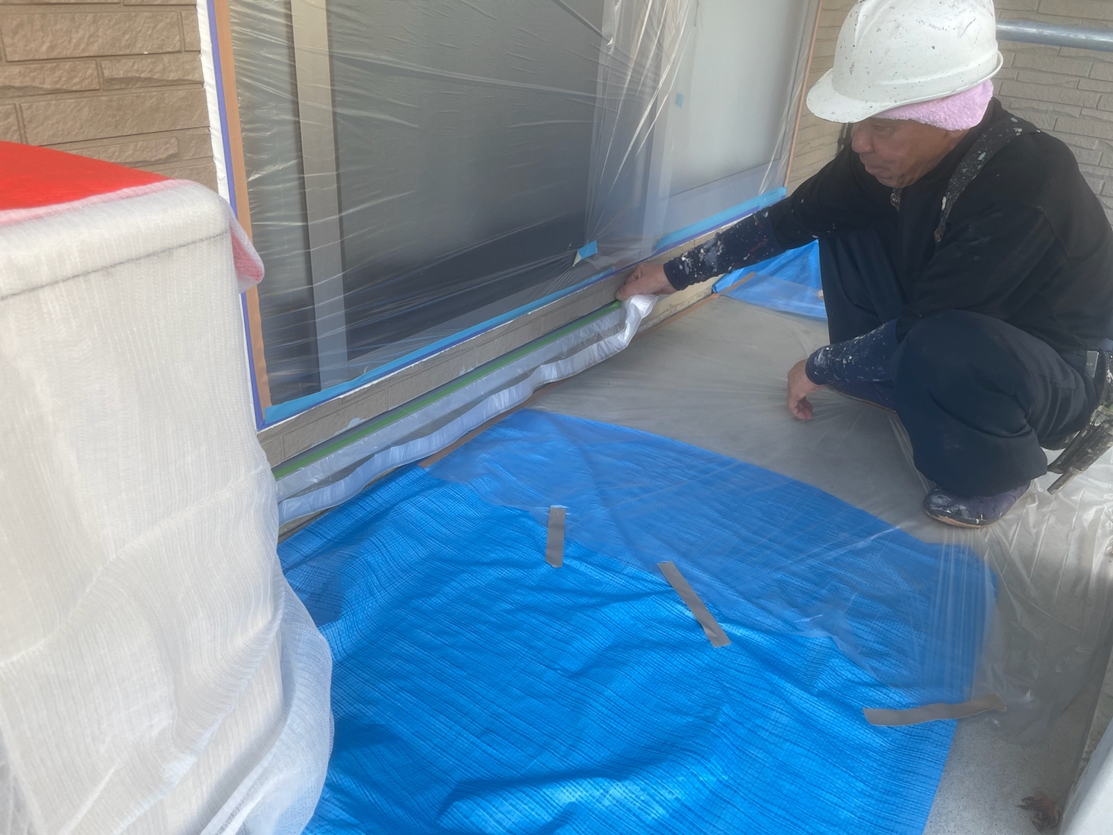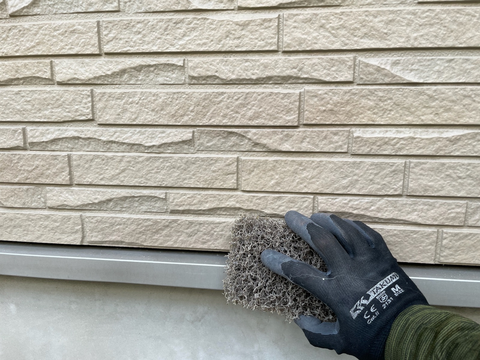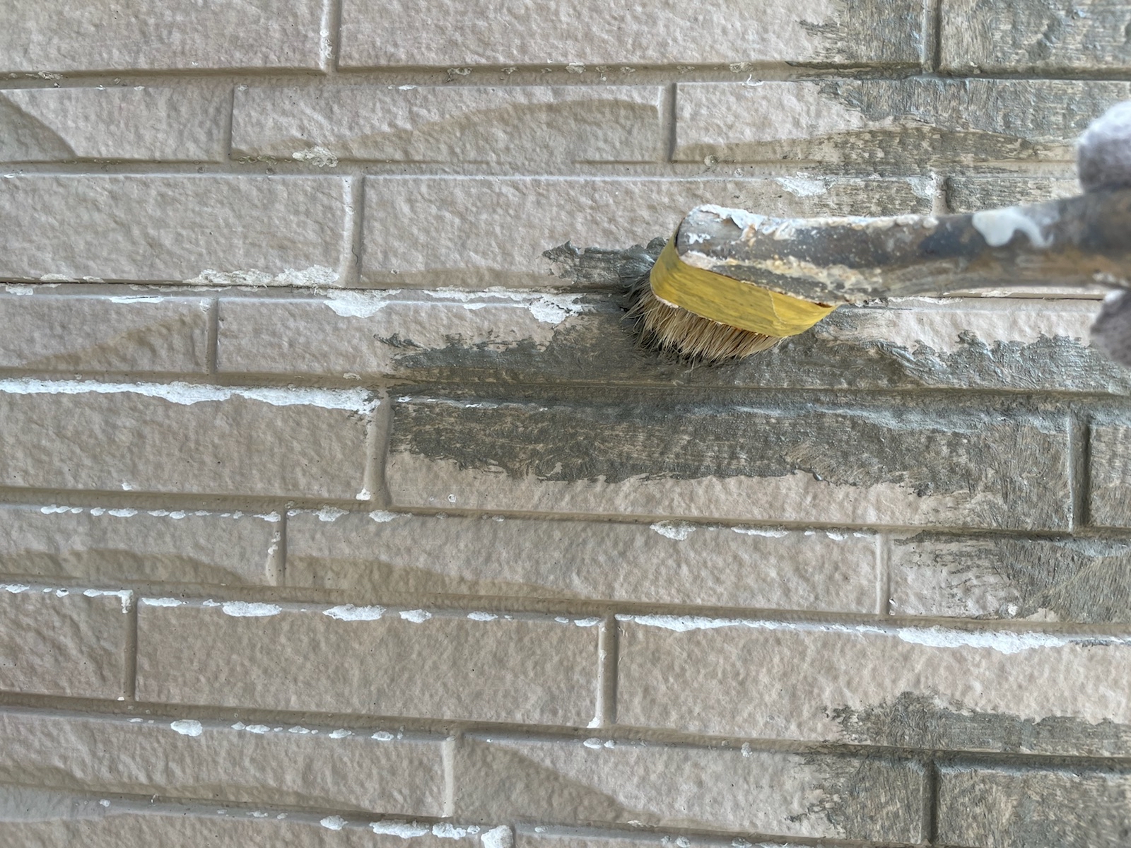 外壁:下地材とシーリング材の密着性を良くするためにプライマーを塗布します。