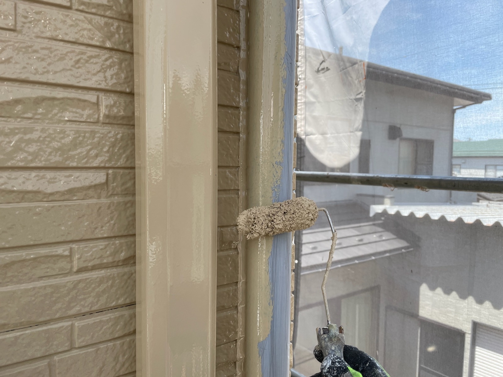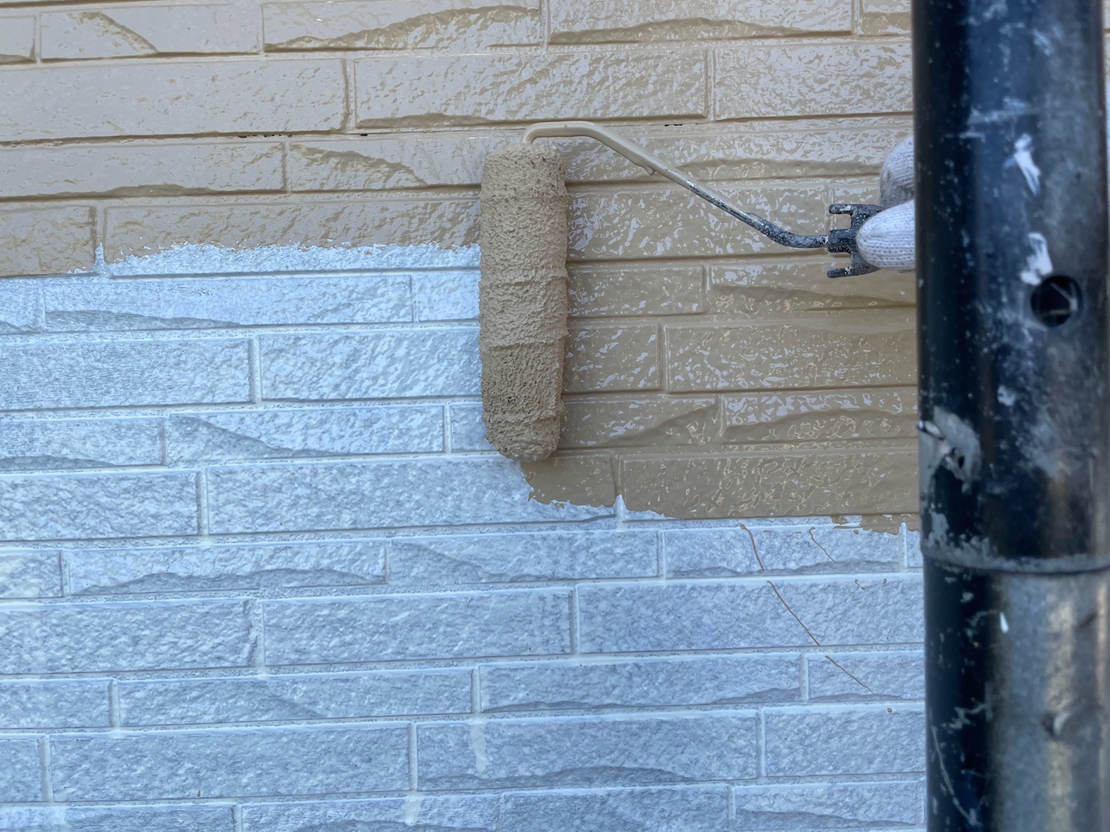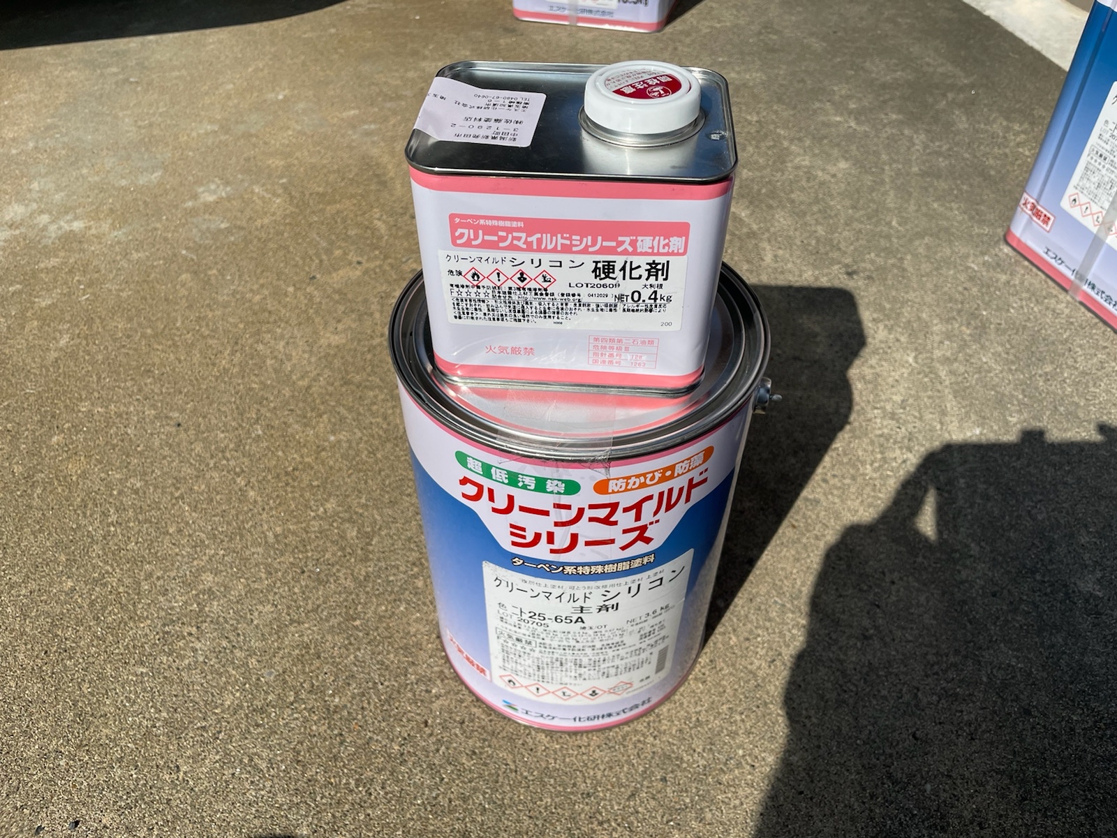 外壁:上塗り材は、エスケー化研のクリーンマイルドシリコンを使用しました。上塗り材を2回塗りました。