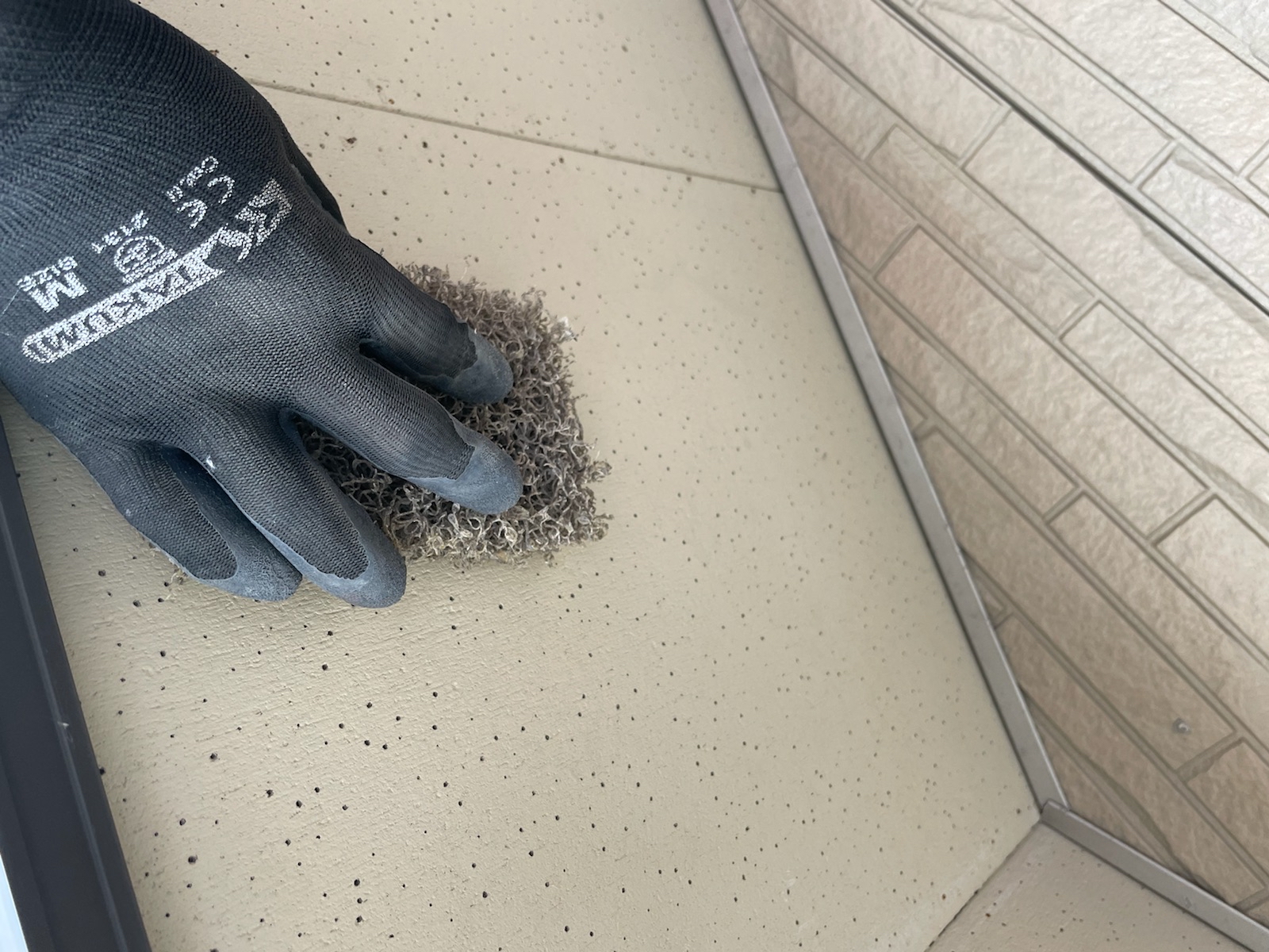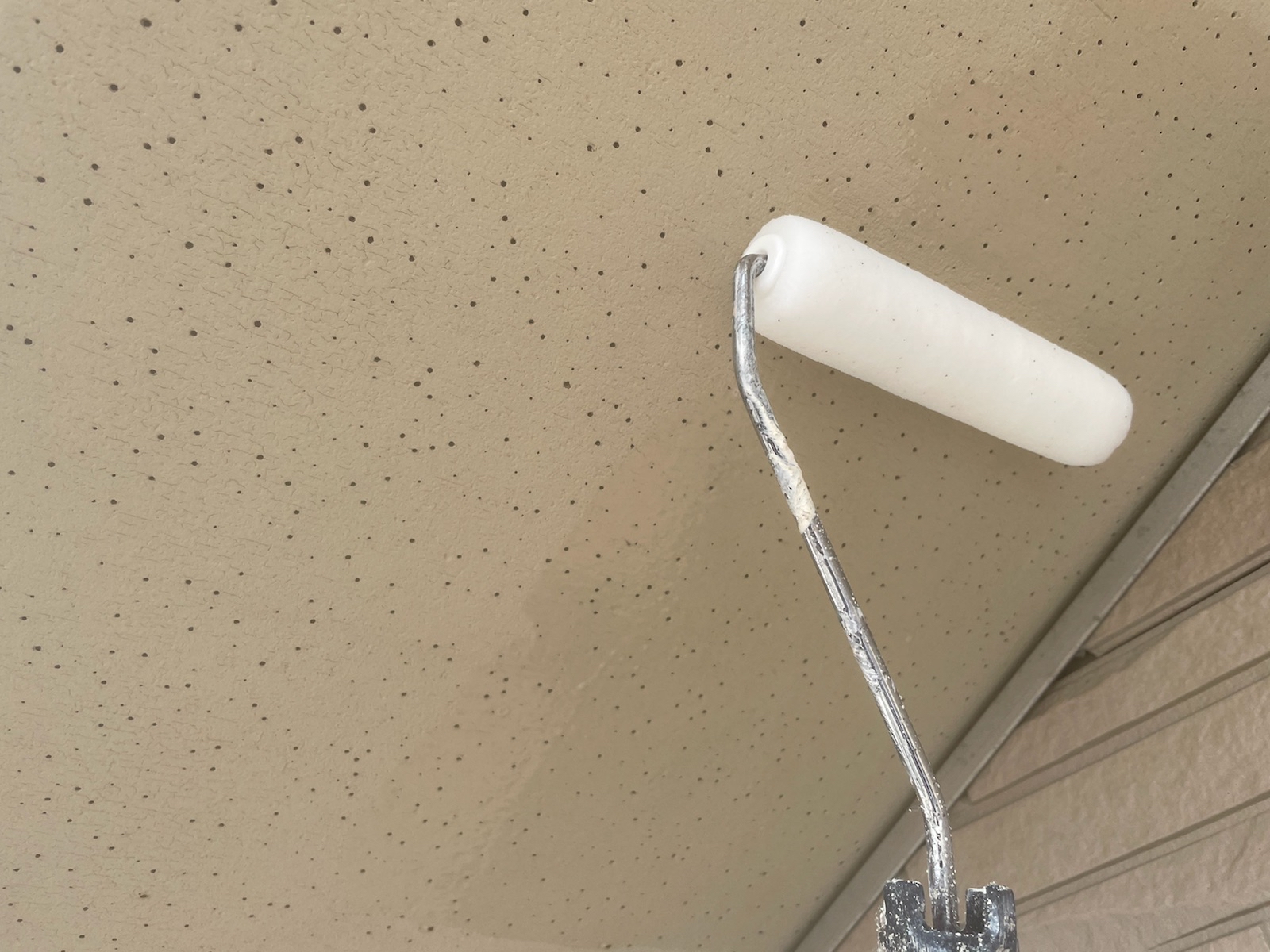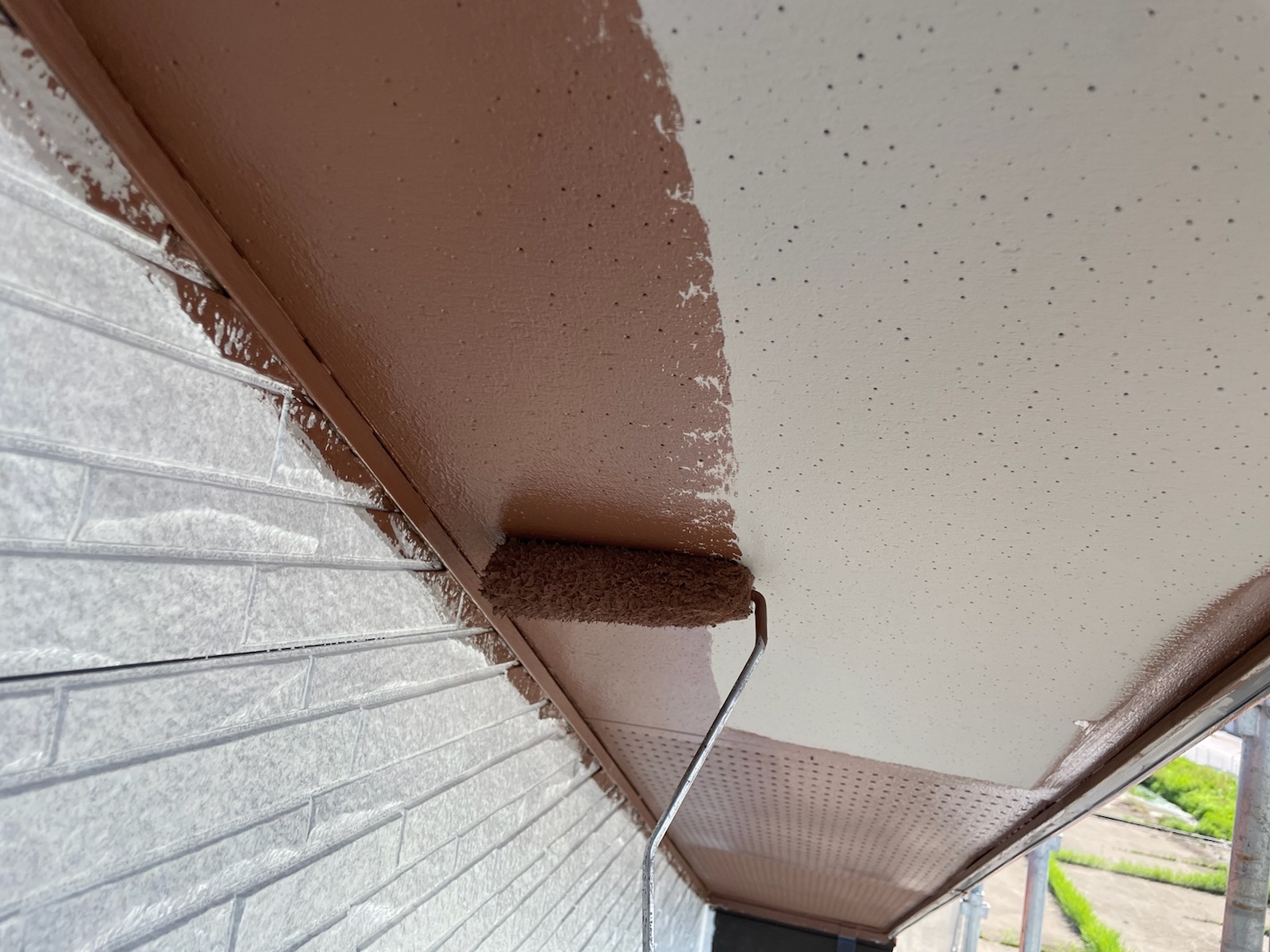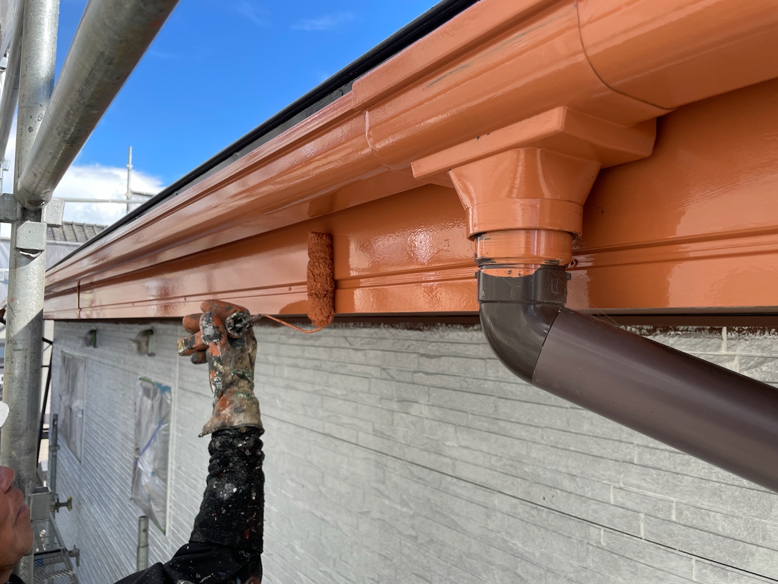 外壁:上塗り材は、エスケー化研のクリーンマイルドシリコンを使用しました。上塗り材を2回塗りました。
