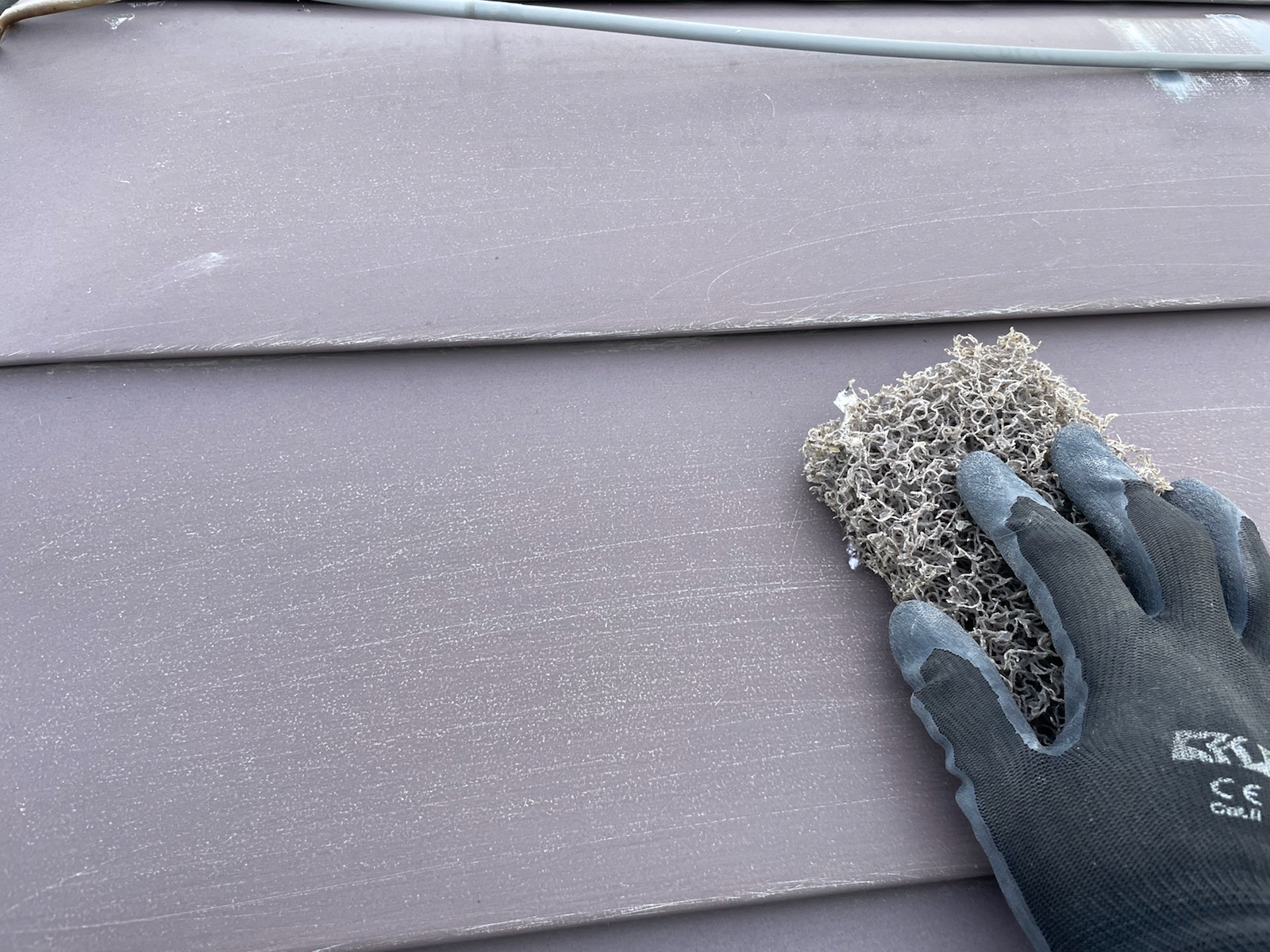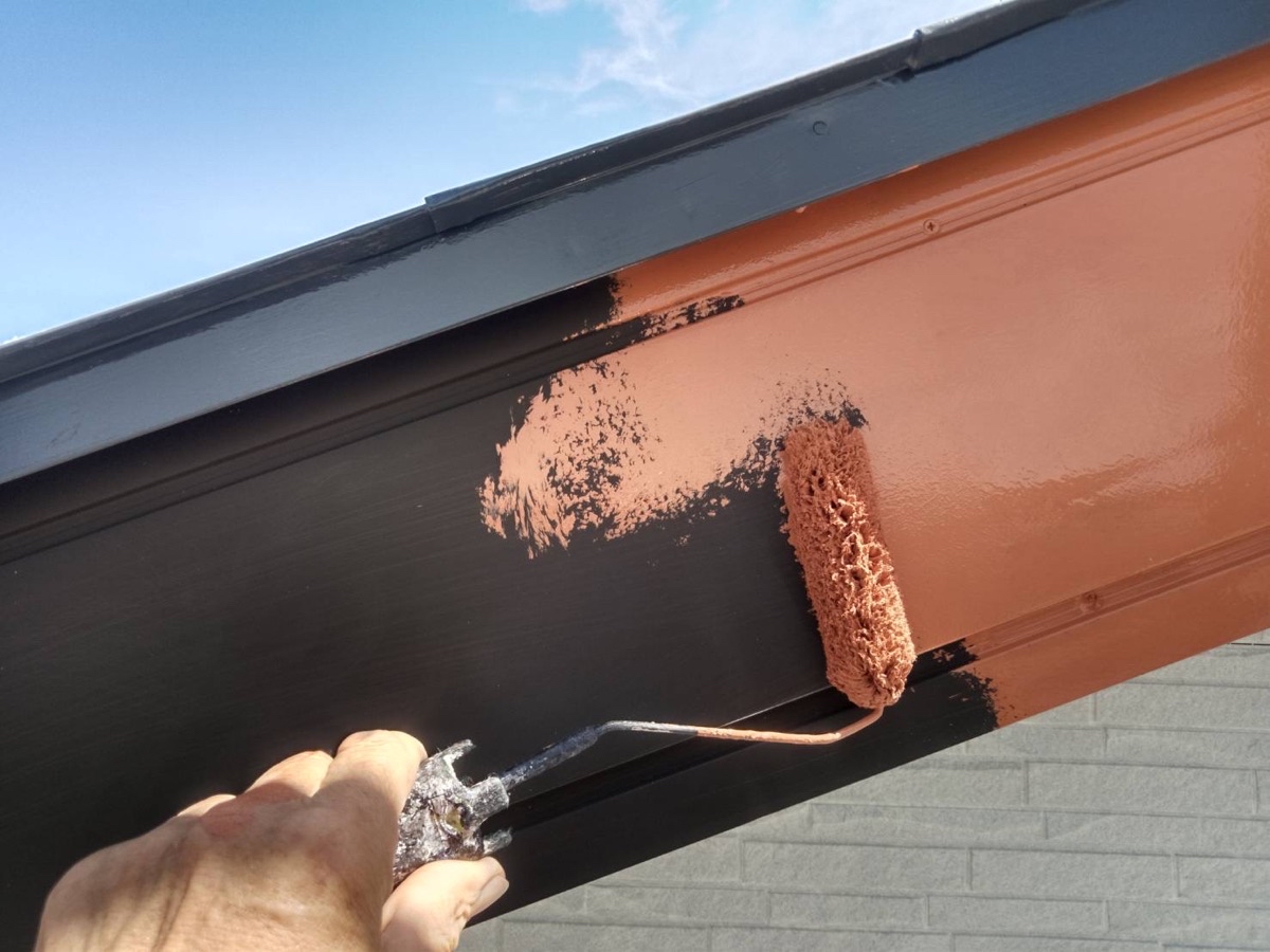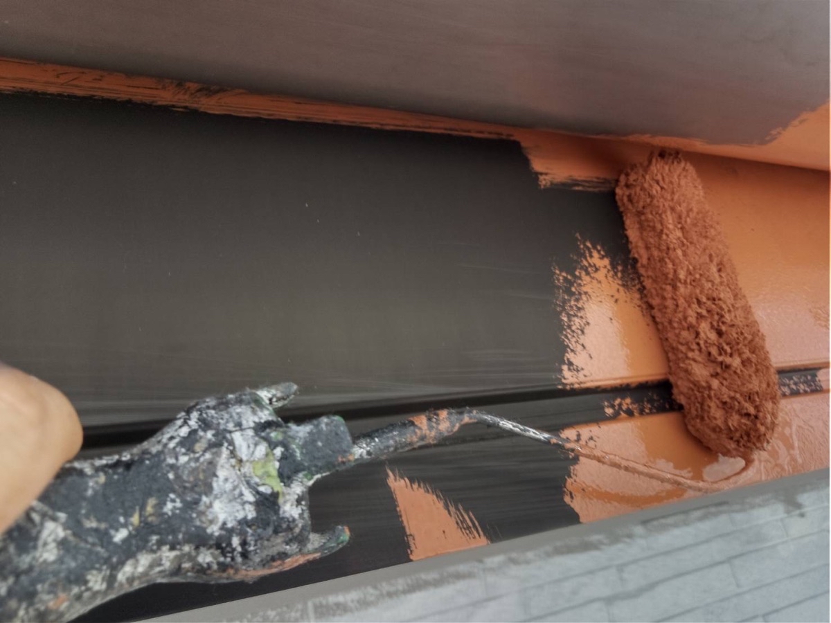 屋根:中・上塗り作業中 上塗り材は、アステックペイントのスーパーシャネツサーモSiを使用しました。