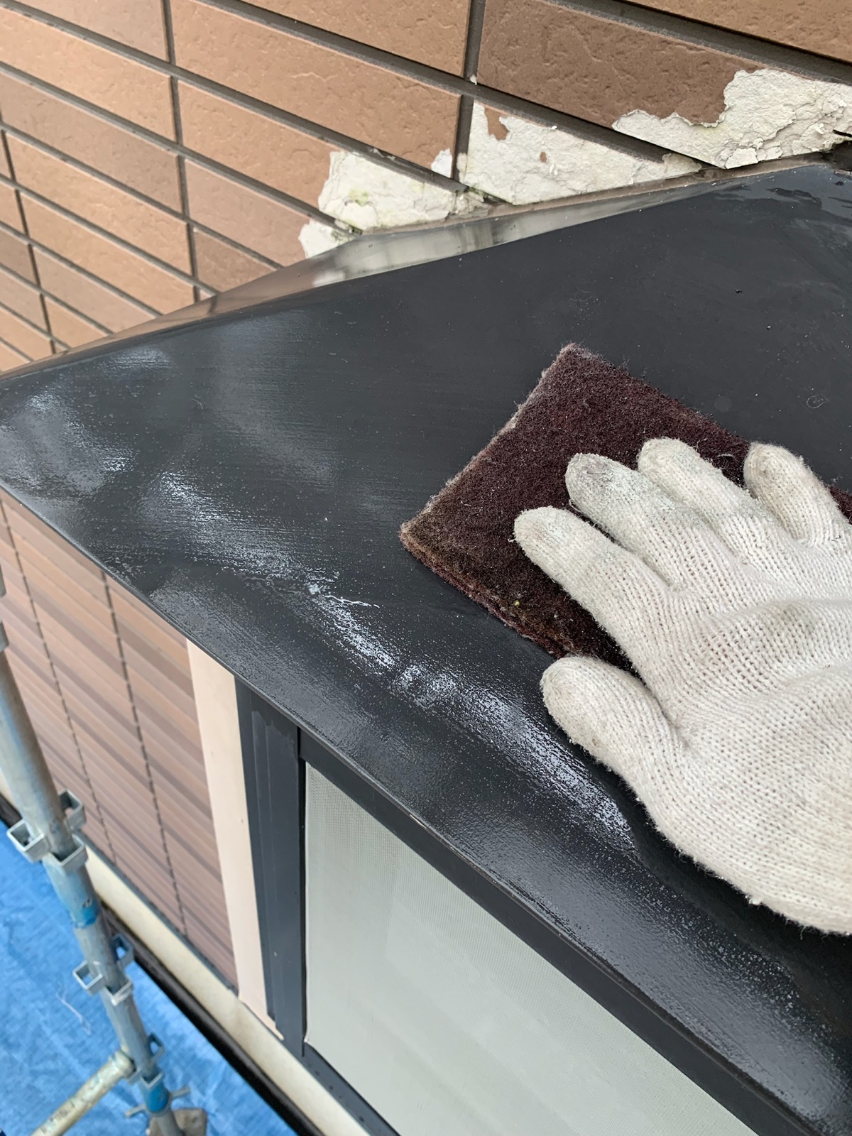 土台水切り:上塗り作業中