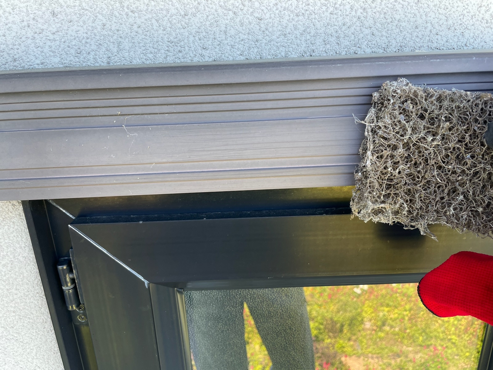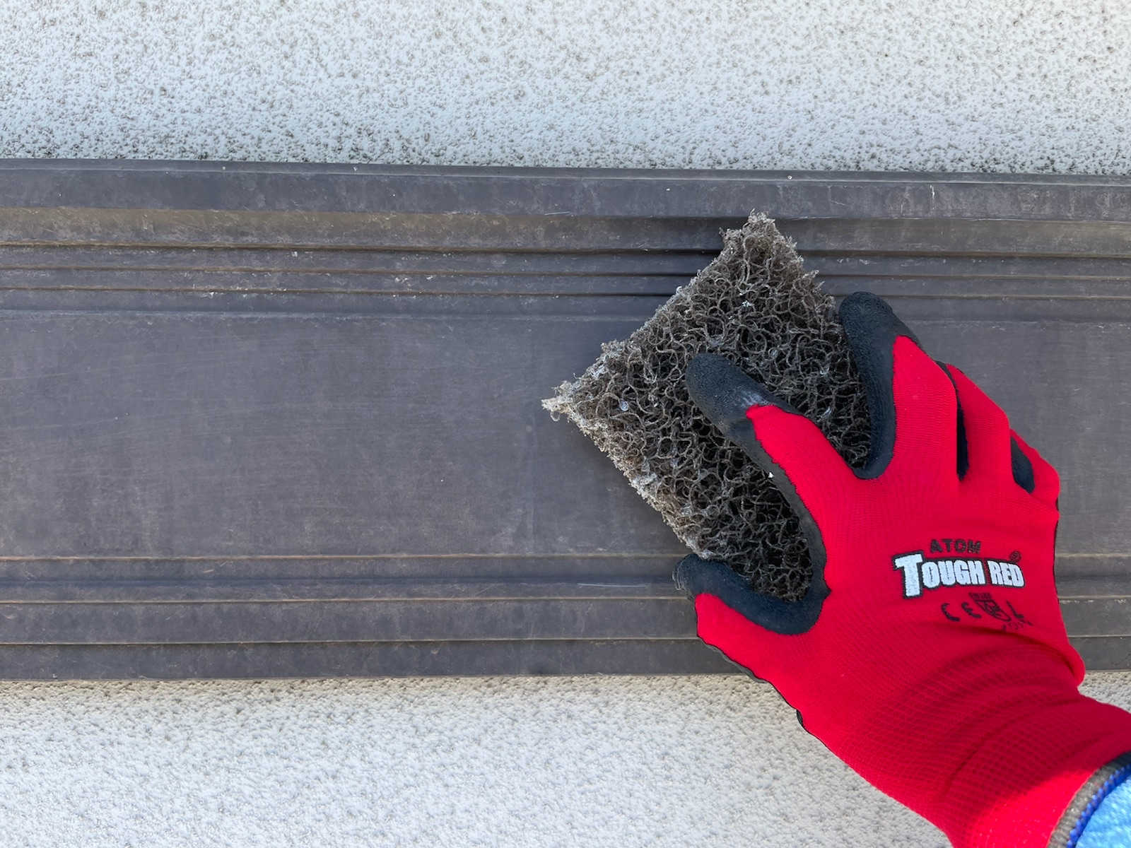 軒樋:ケレン作業中。錆や洗浄で落としきれなかった汚れなど落としていきます。
