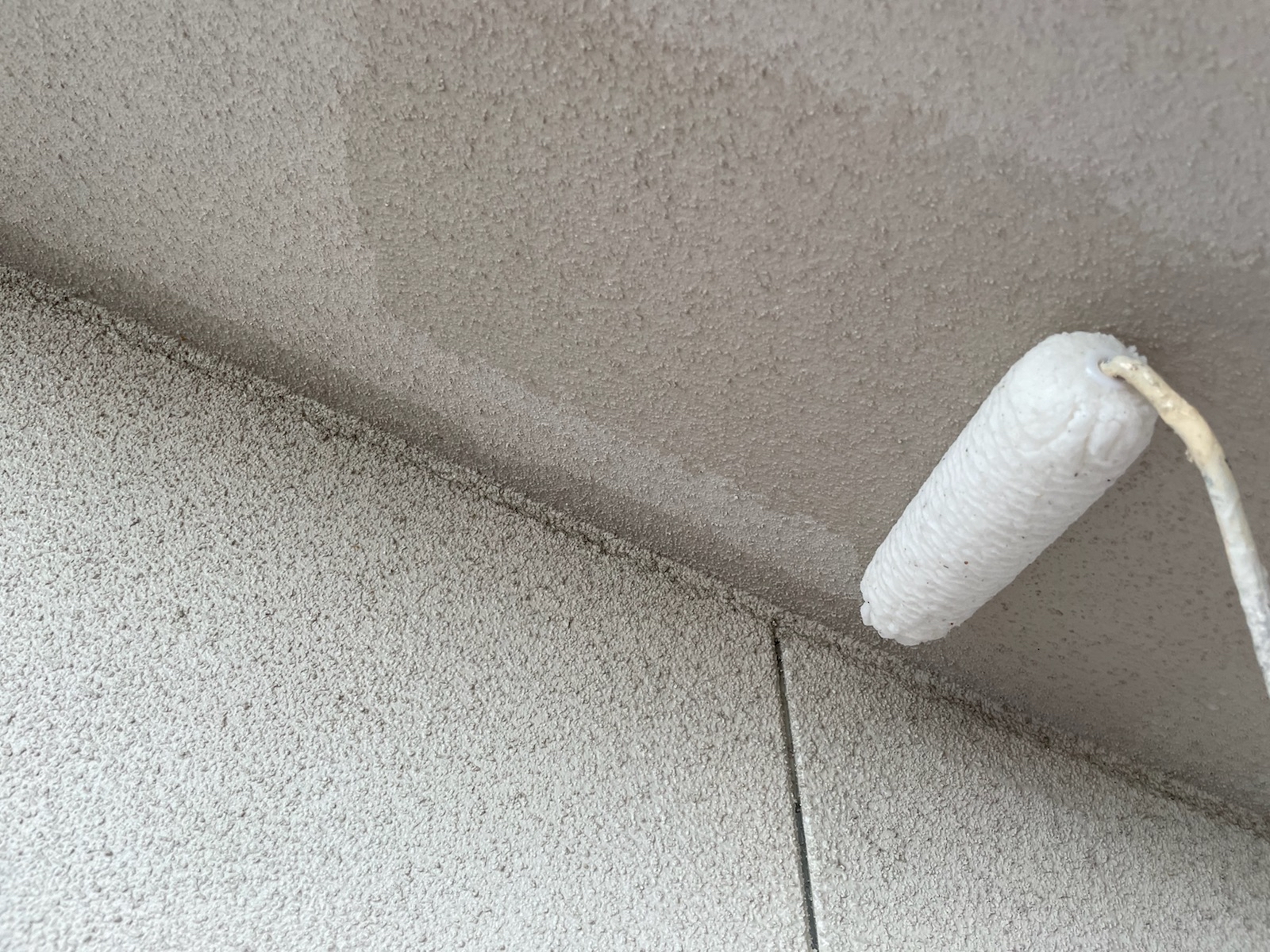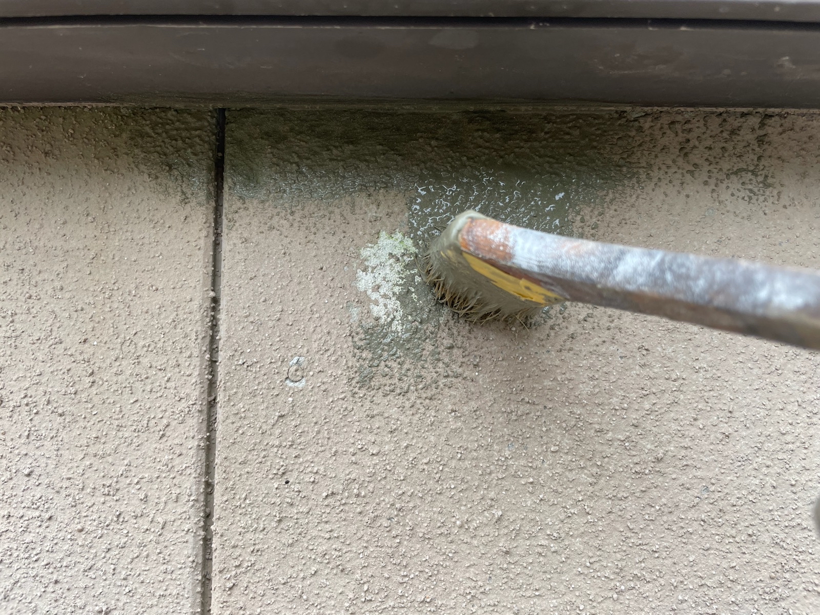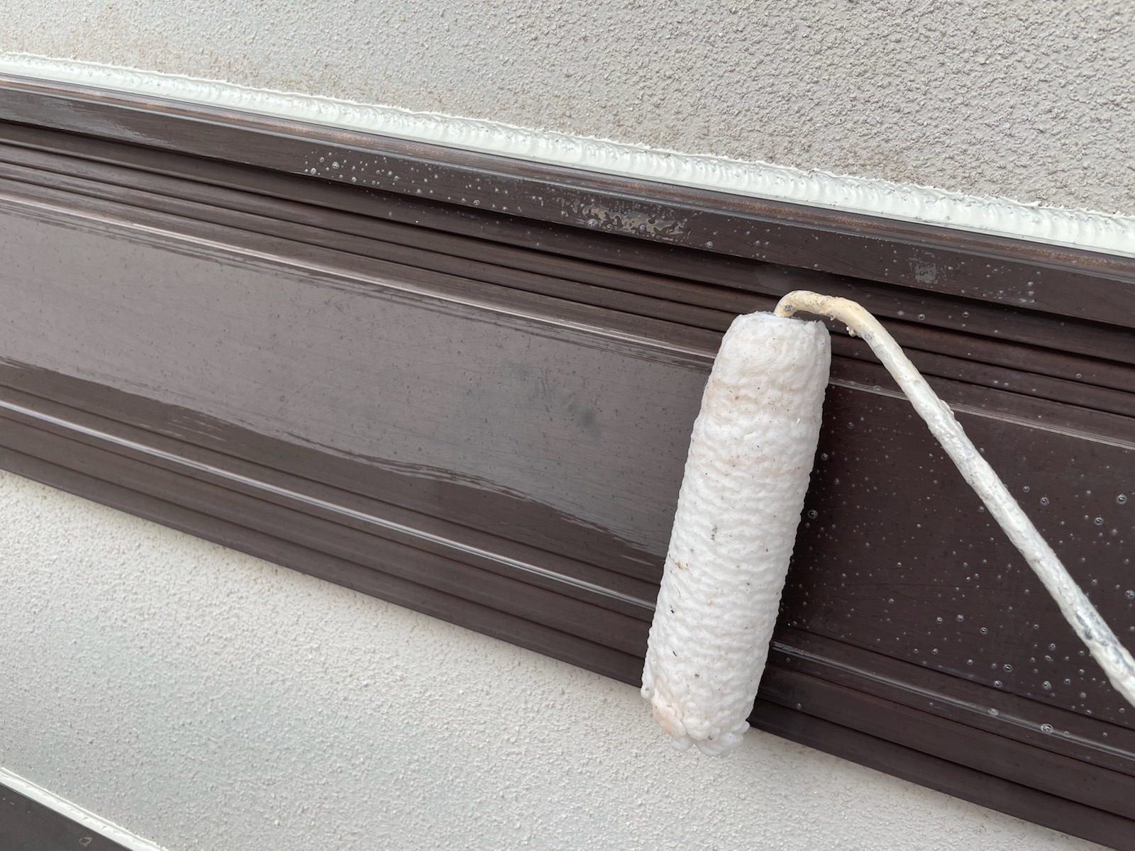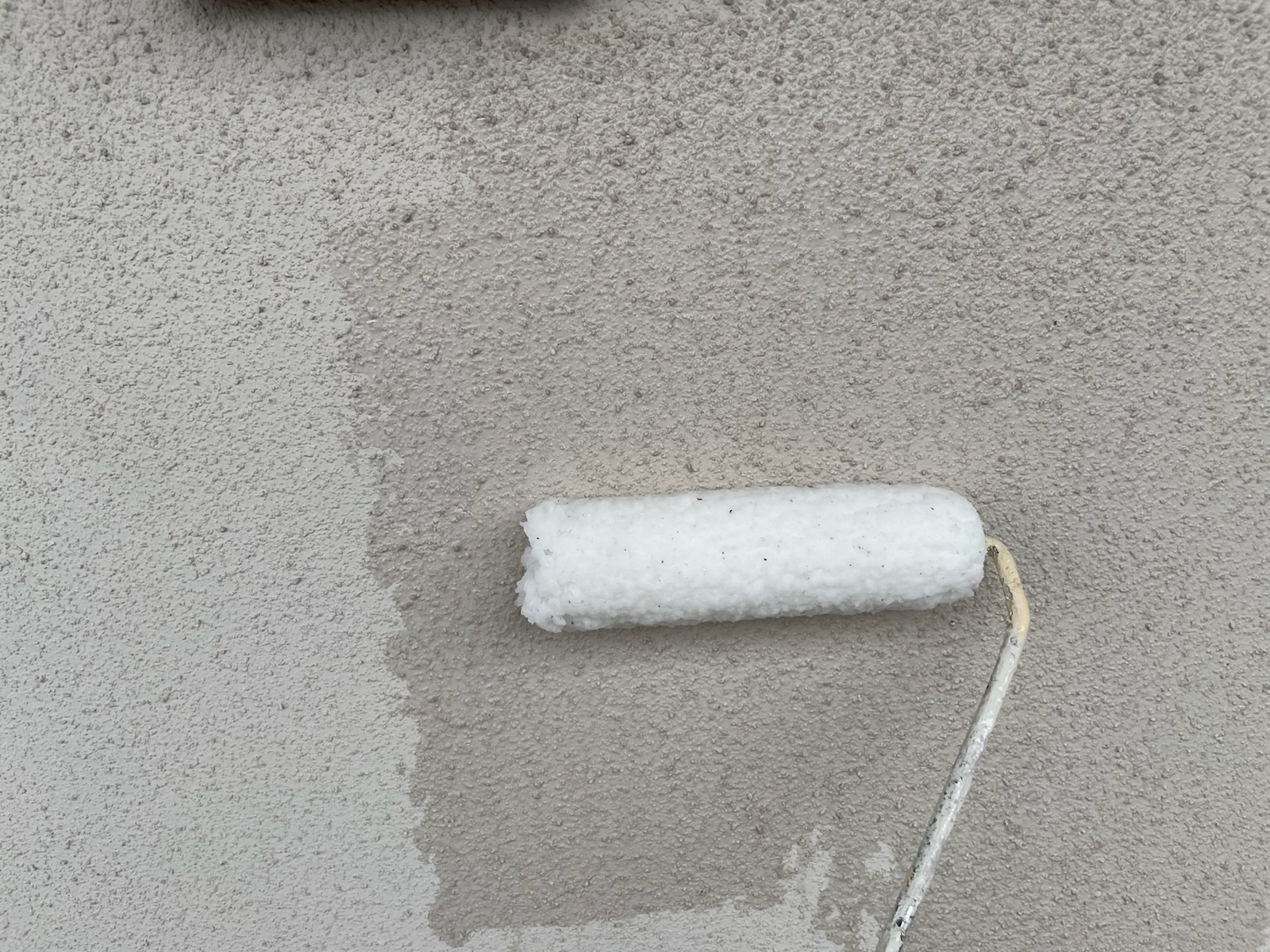 外壁:下塗り作業中。下塗り材は、アステックペイントのエポパワーシーラーを使用しました。