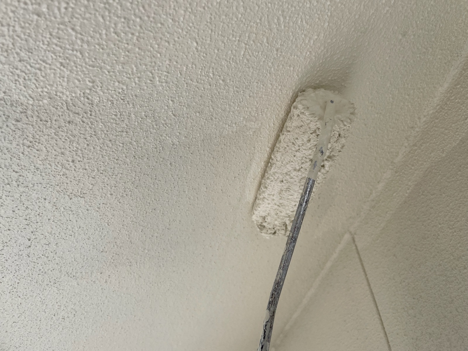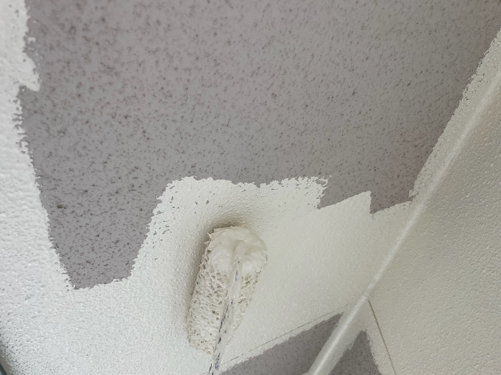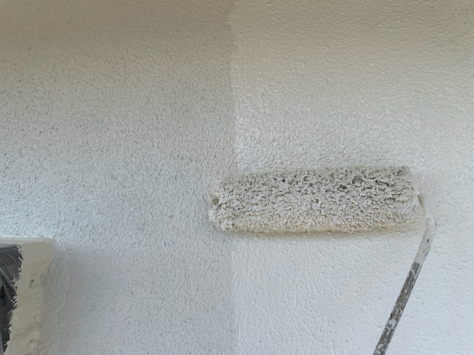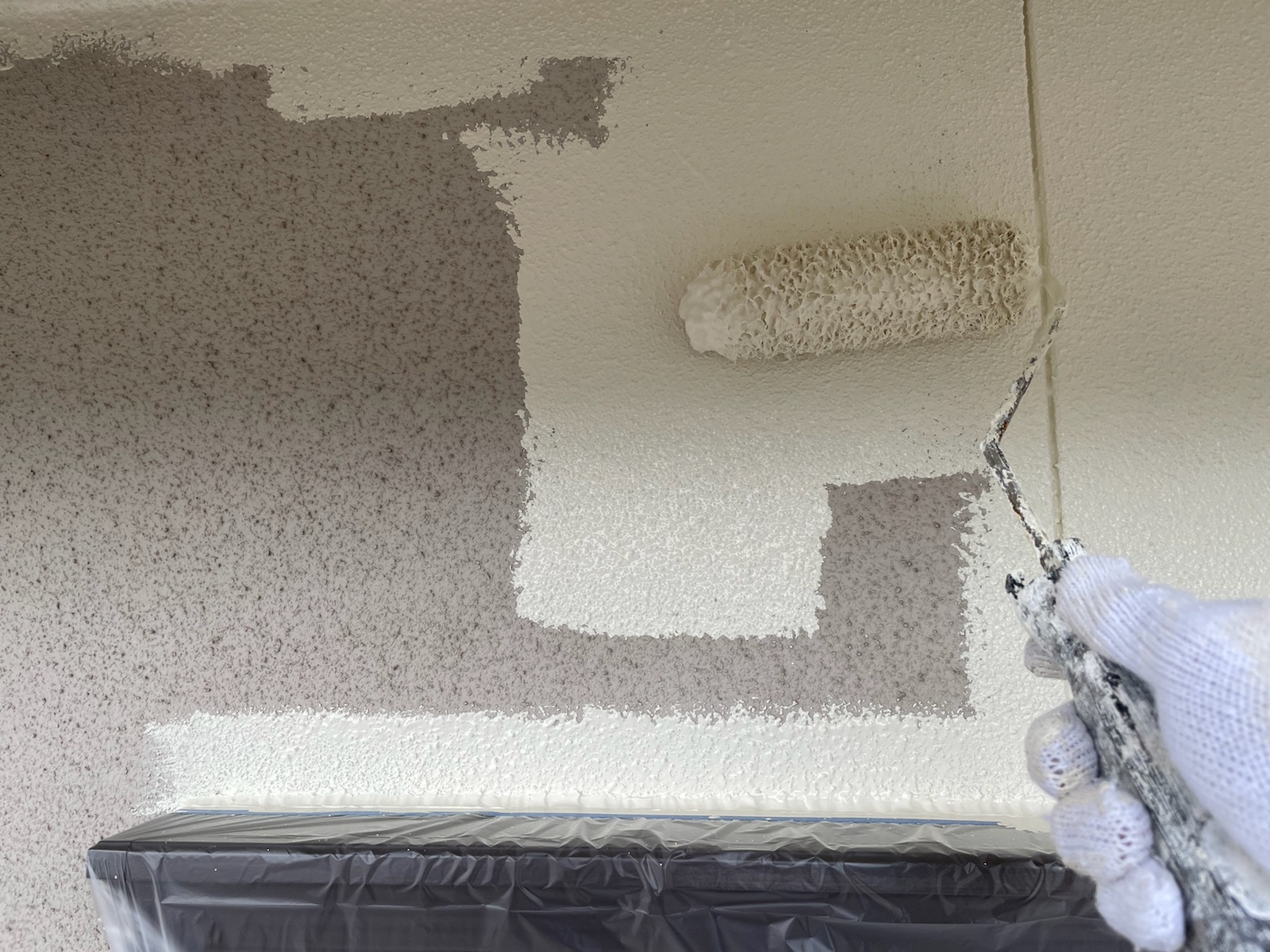 軒天:上塗り作業中