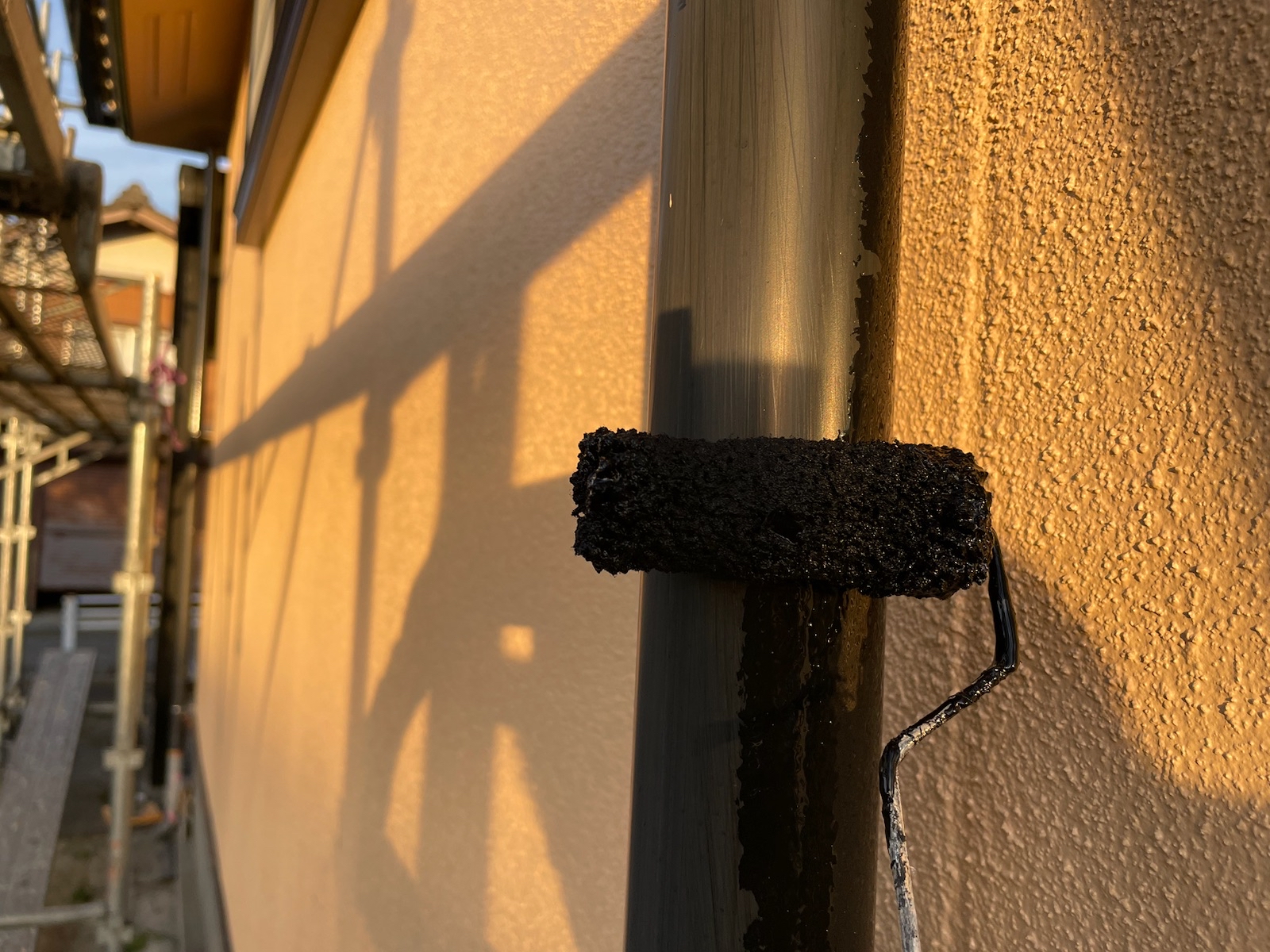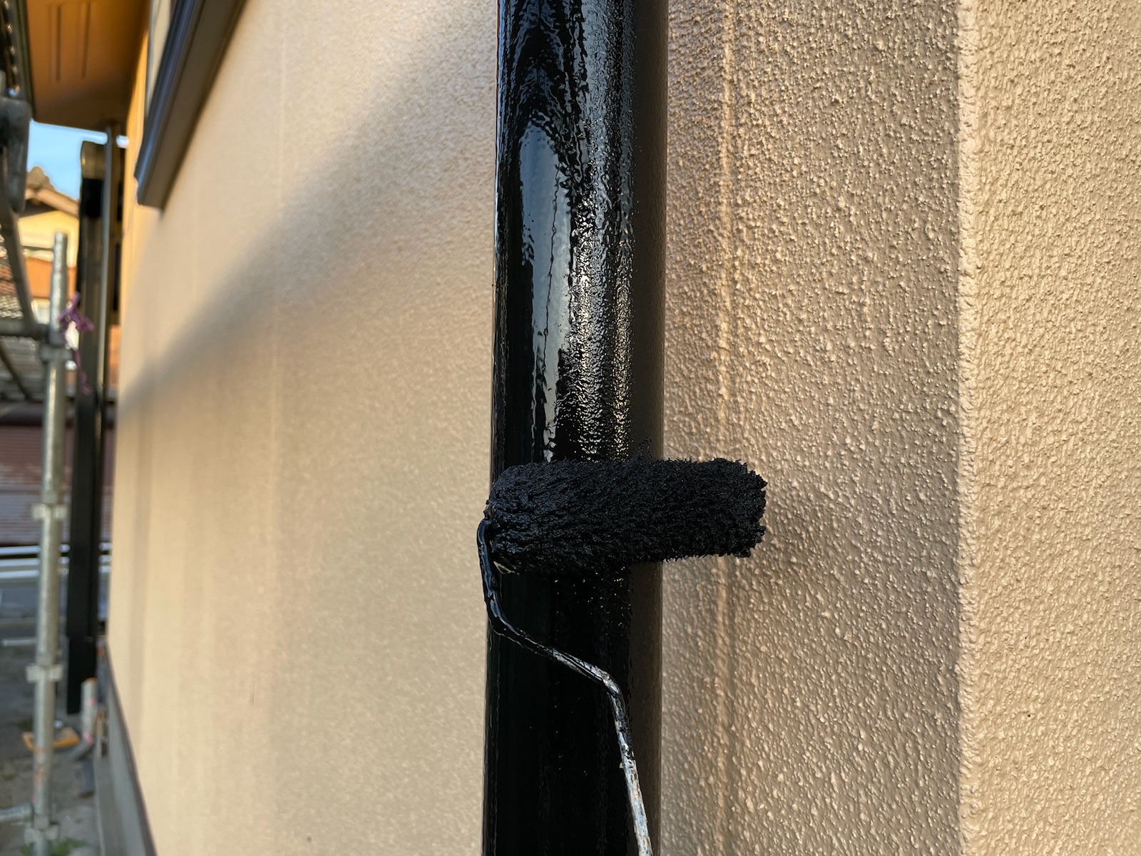竪樋:上塗り作業中