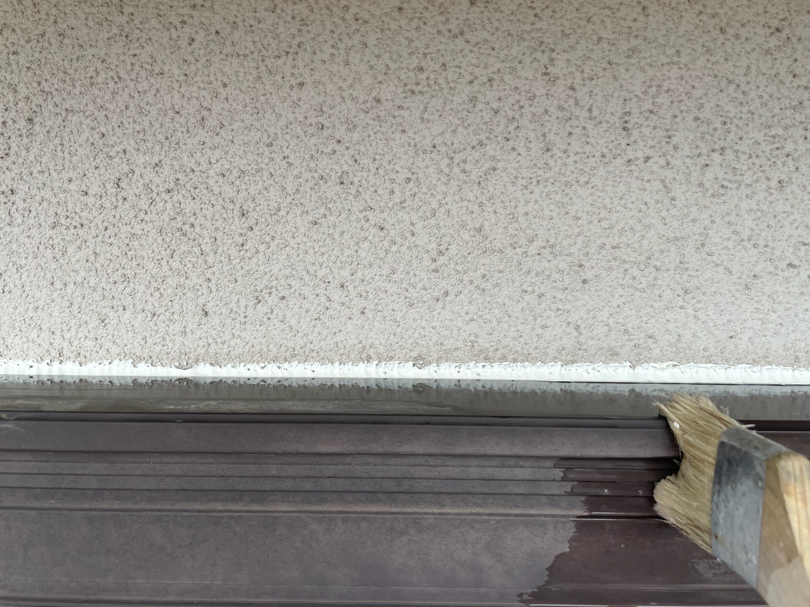 軒天:中塗り作業中