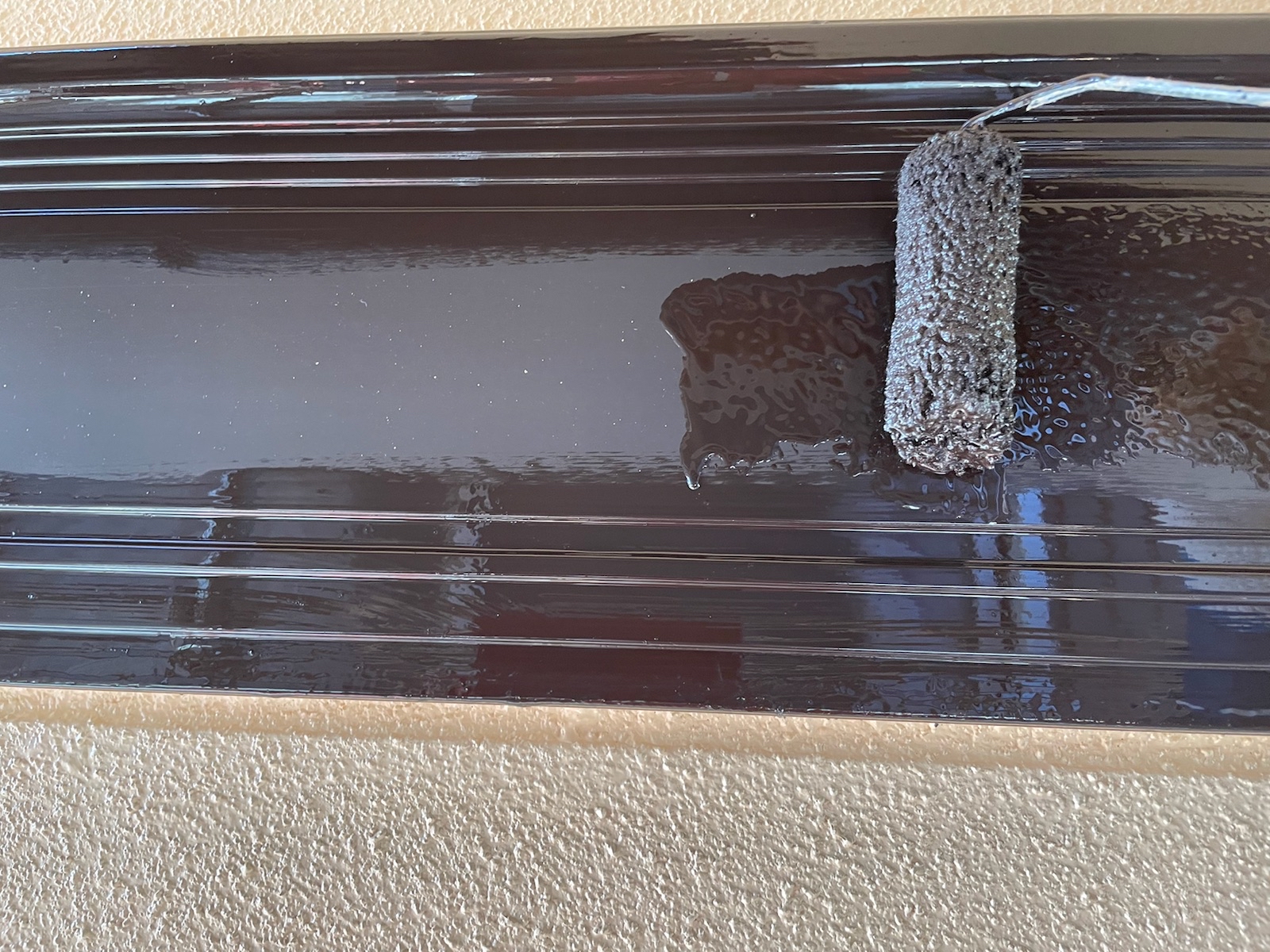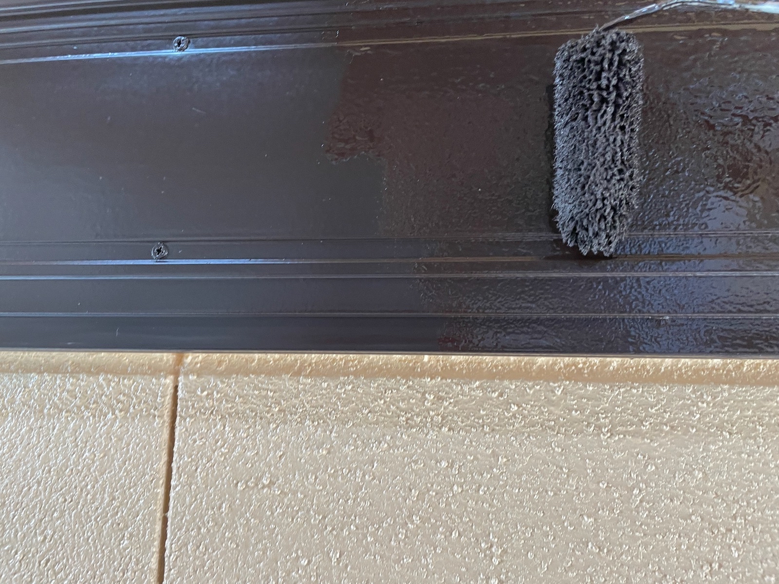 軒樋:上塗り作業中