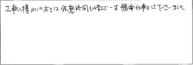 工事に携わった方々は休憩時間も惜しんで一生懸命仕事をしてくださいました。