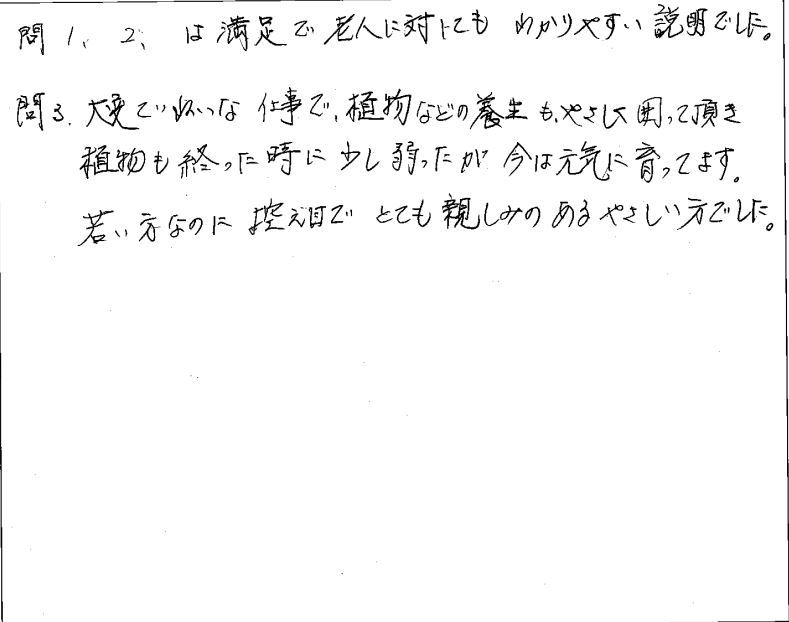 問1・2は満足で老人に対しても分かりやすい説明でした。