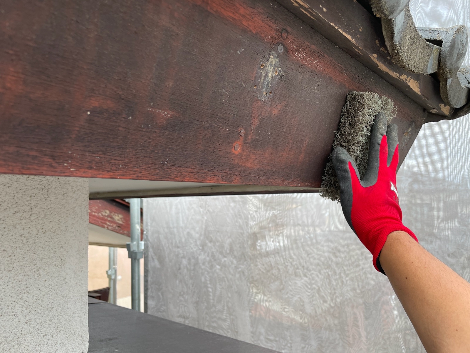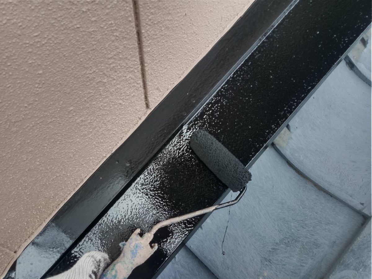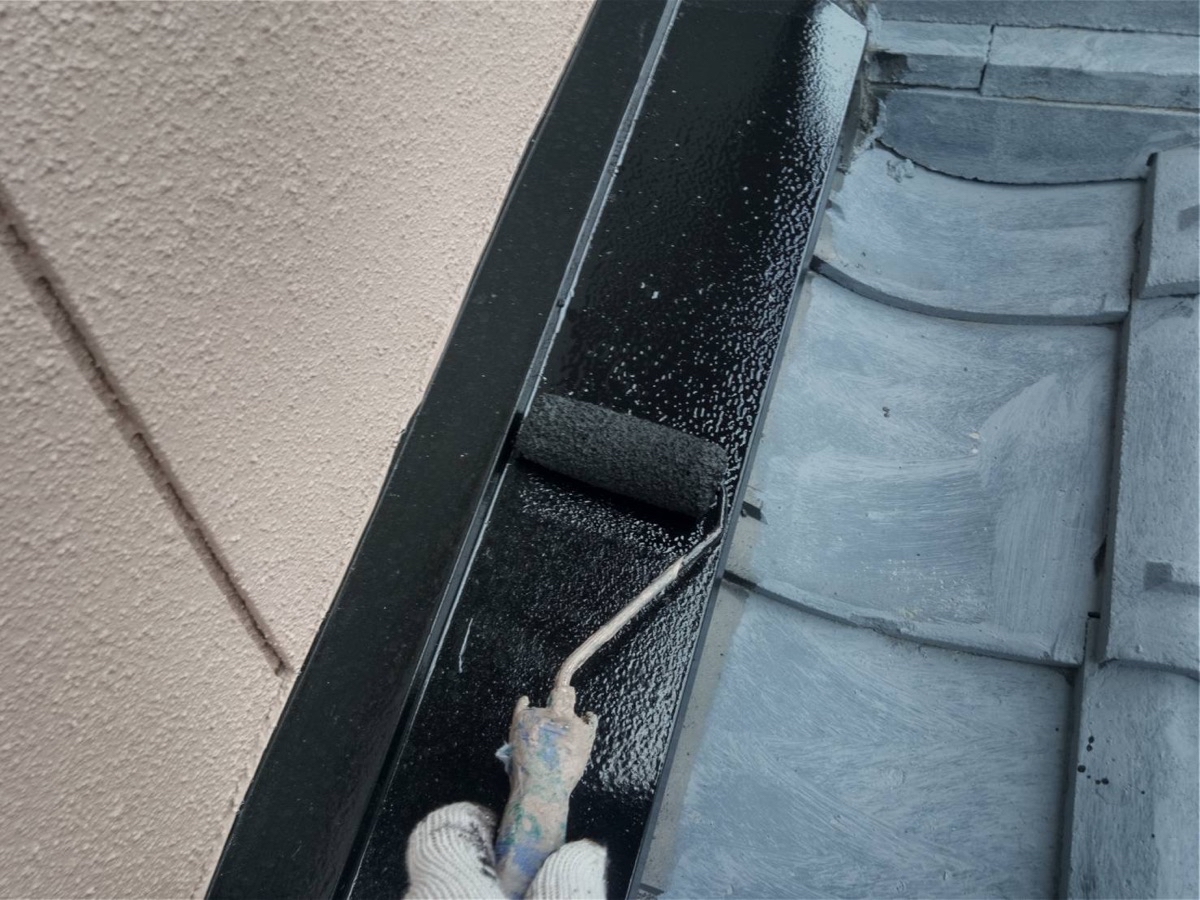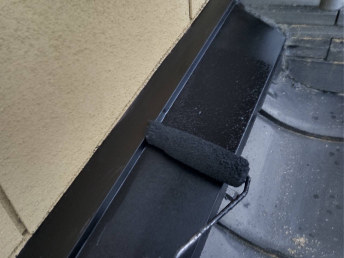下塗り作業中:エーエスペイントのsun瓦エクセルガードを使用しました。