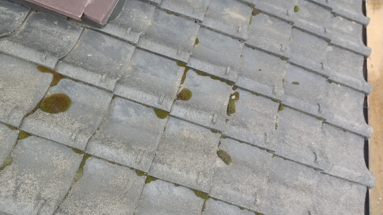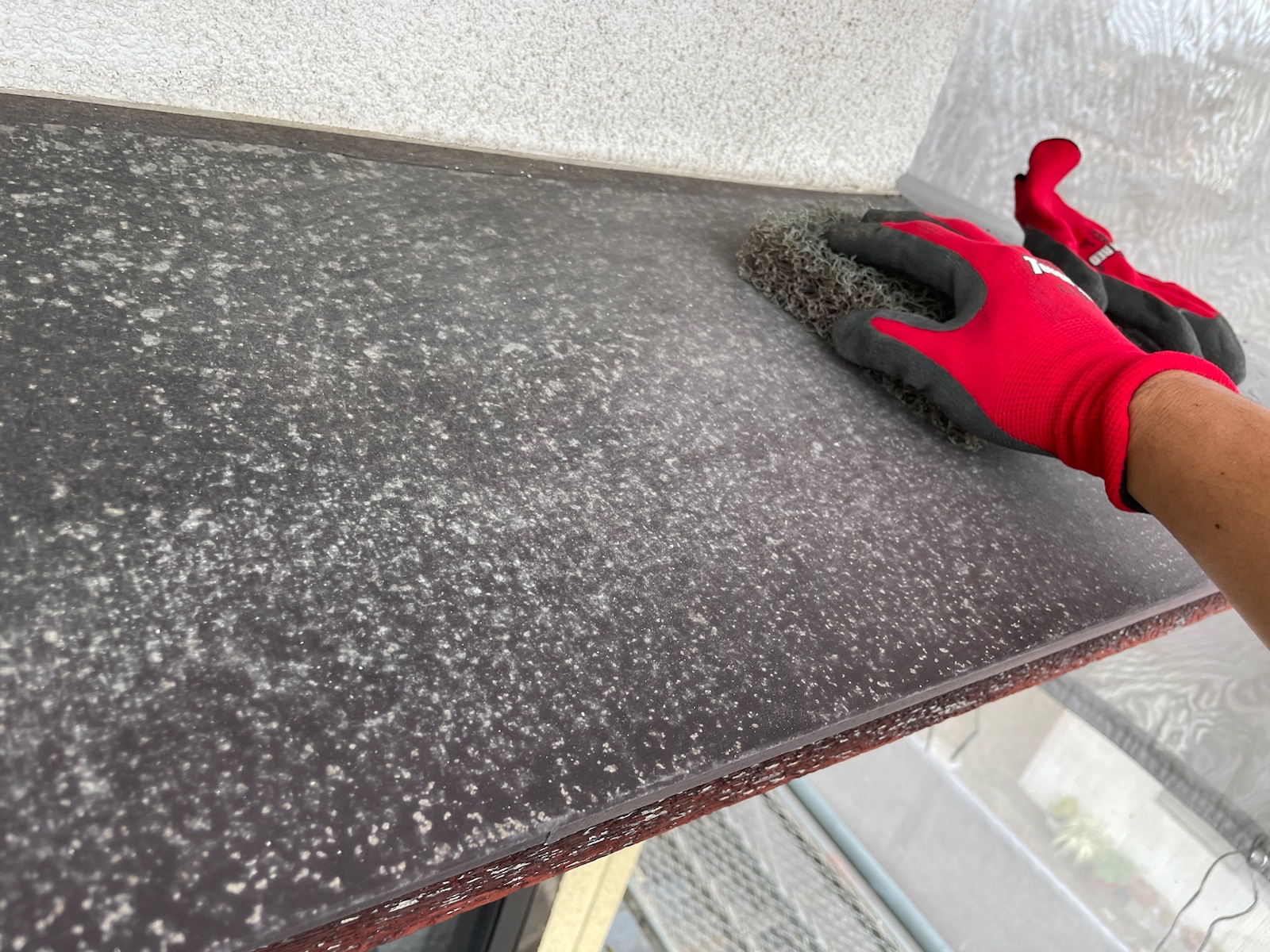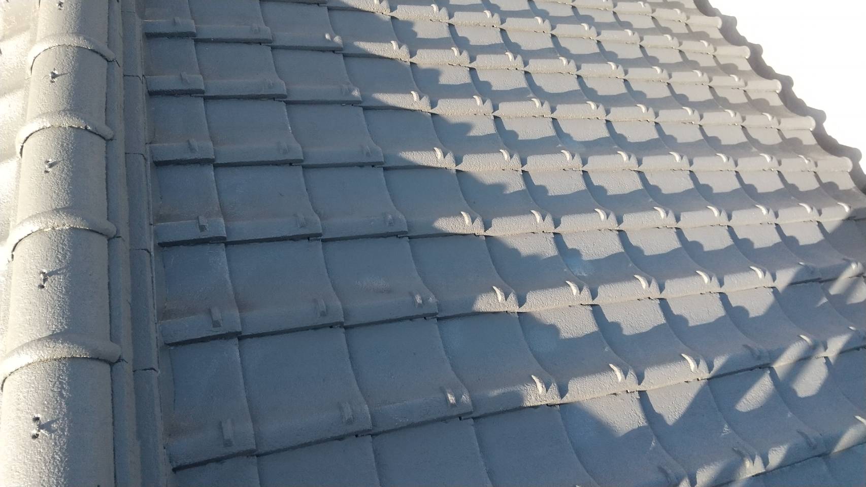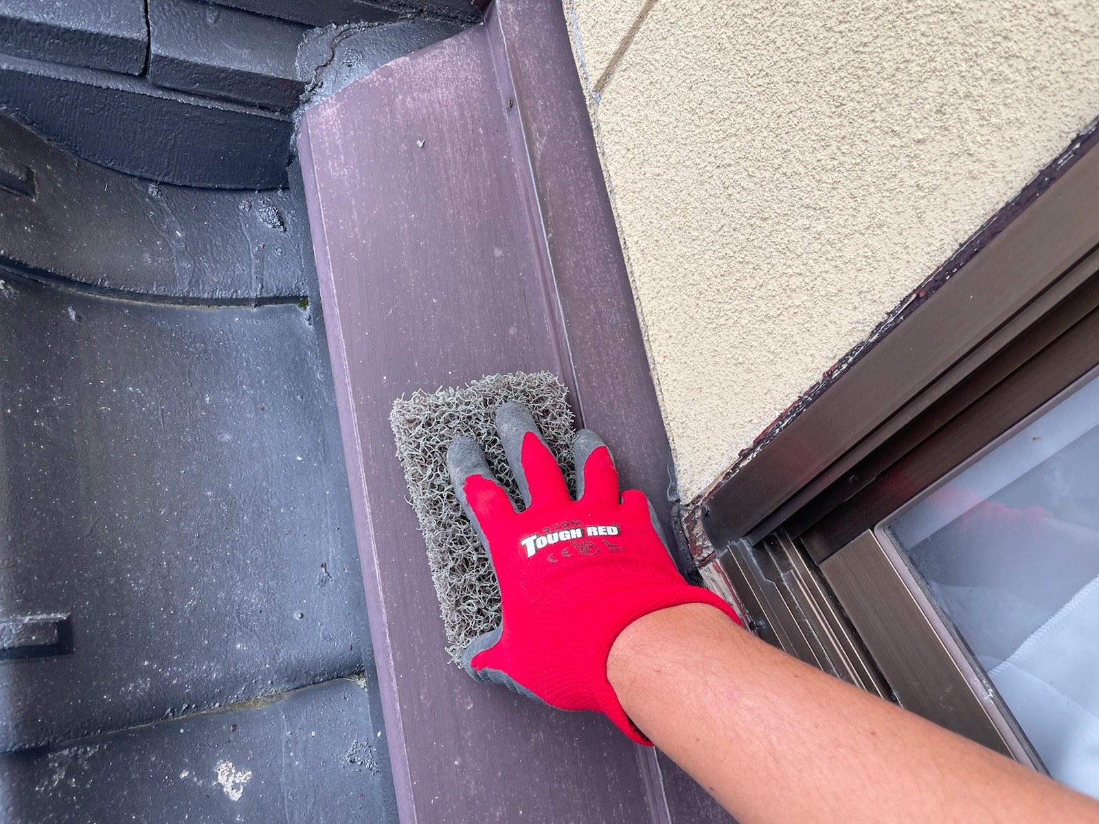 下塗り作業中:エーエスペイントのsun瓦エクセルガードを使用しました。