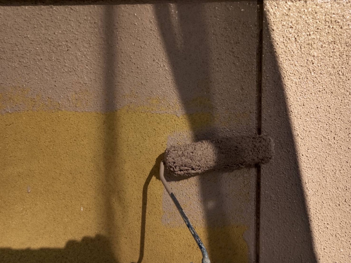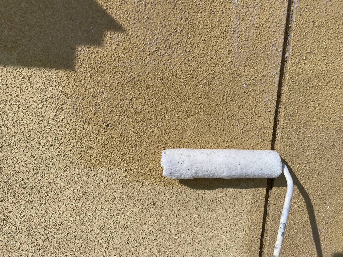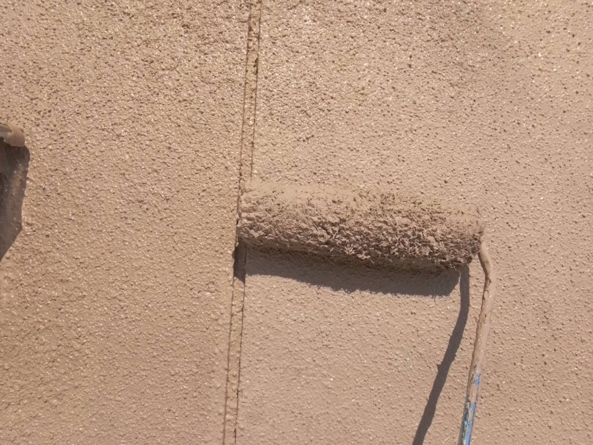 外壁:下塗り作業中。アステックペイントのプレミアムSSシーラープライマーを使用しました。