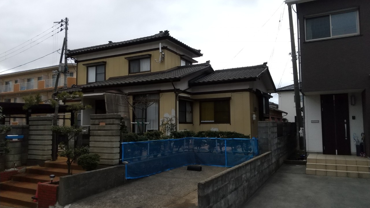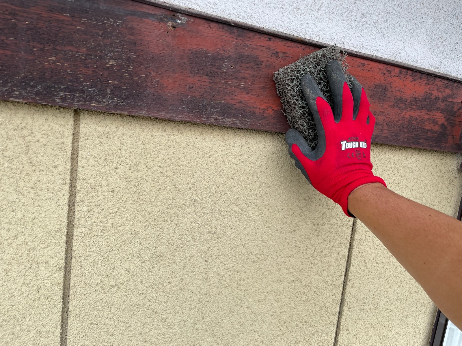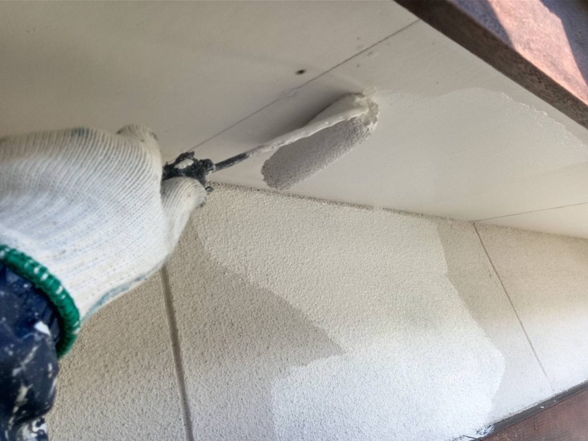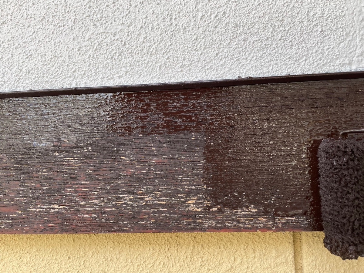 外壁:下塗り作業中。アステックペイントのプレミアムSSシーラープライマーを使用しました。