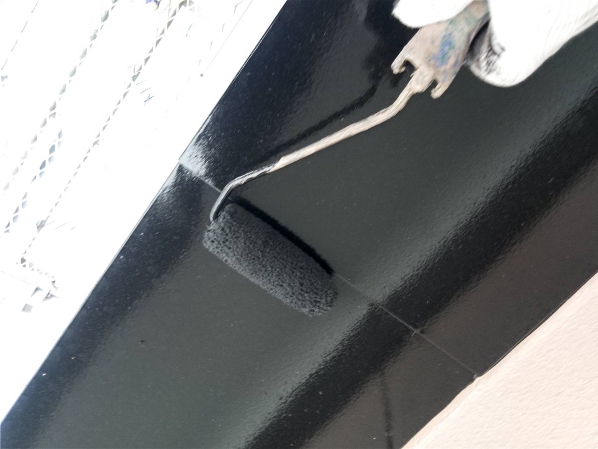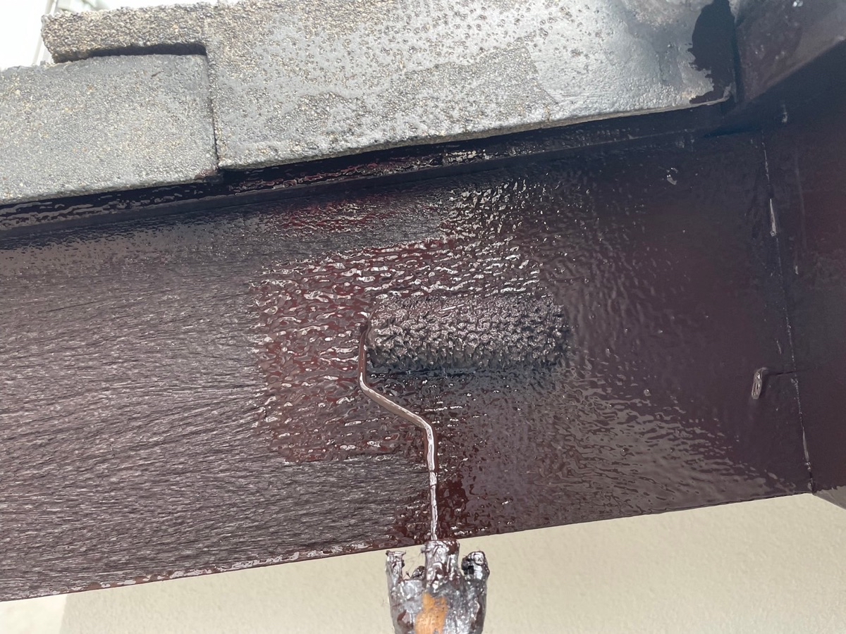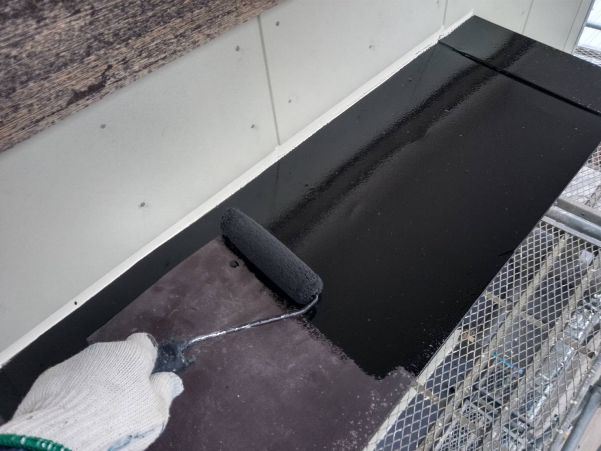 上塗り作業中:スーパーシャネツサーモFの2回目を塗装中です。