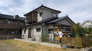 外壁:中塗り作業中。アステックペイントの超低汚染プラチナリファイン2000MF-IRの1回目を塗装中です。