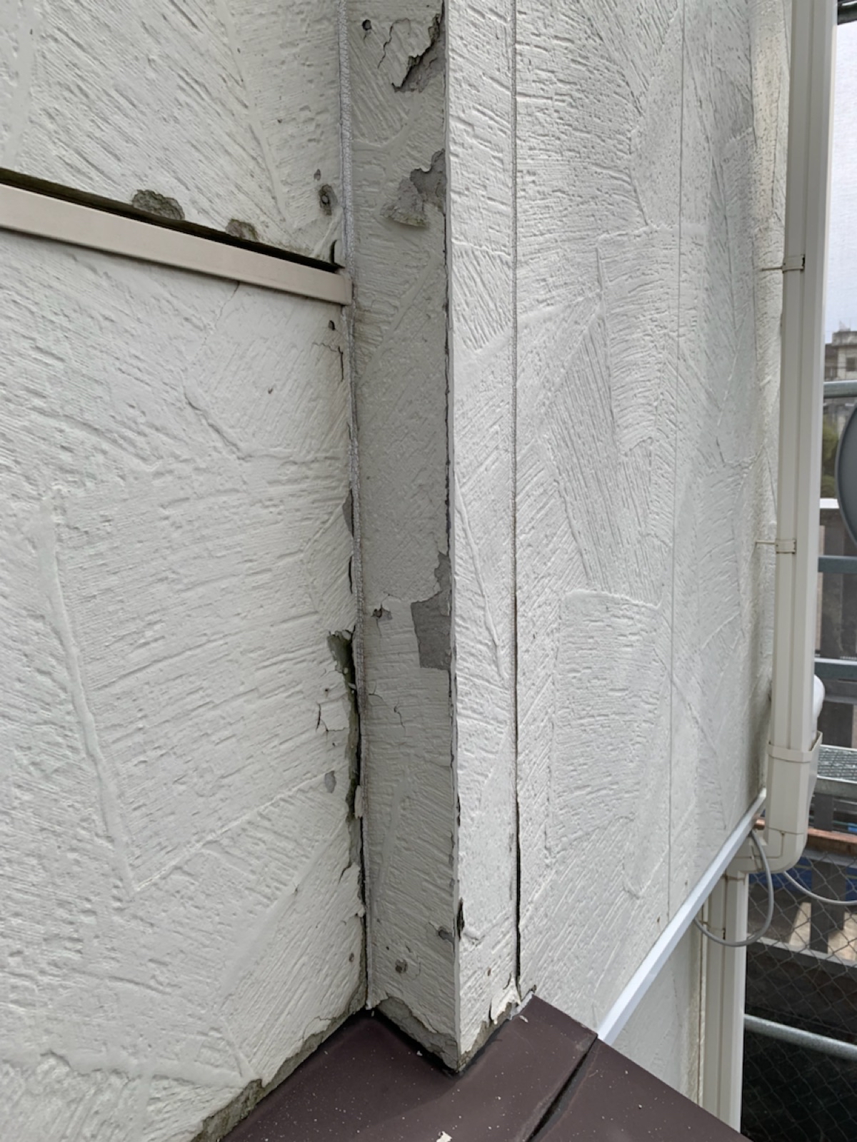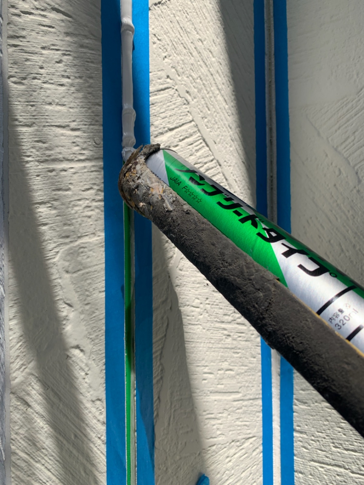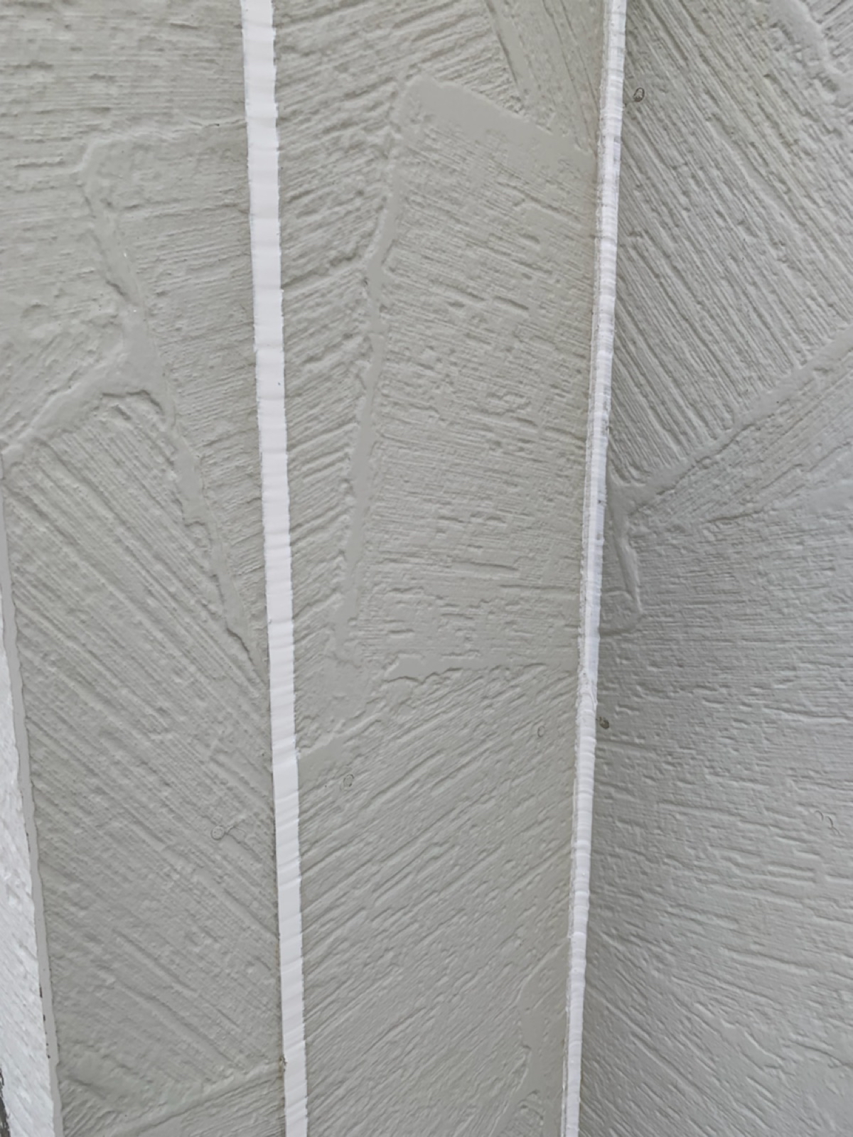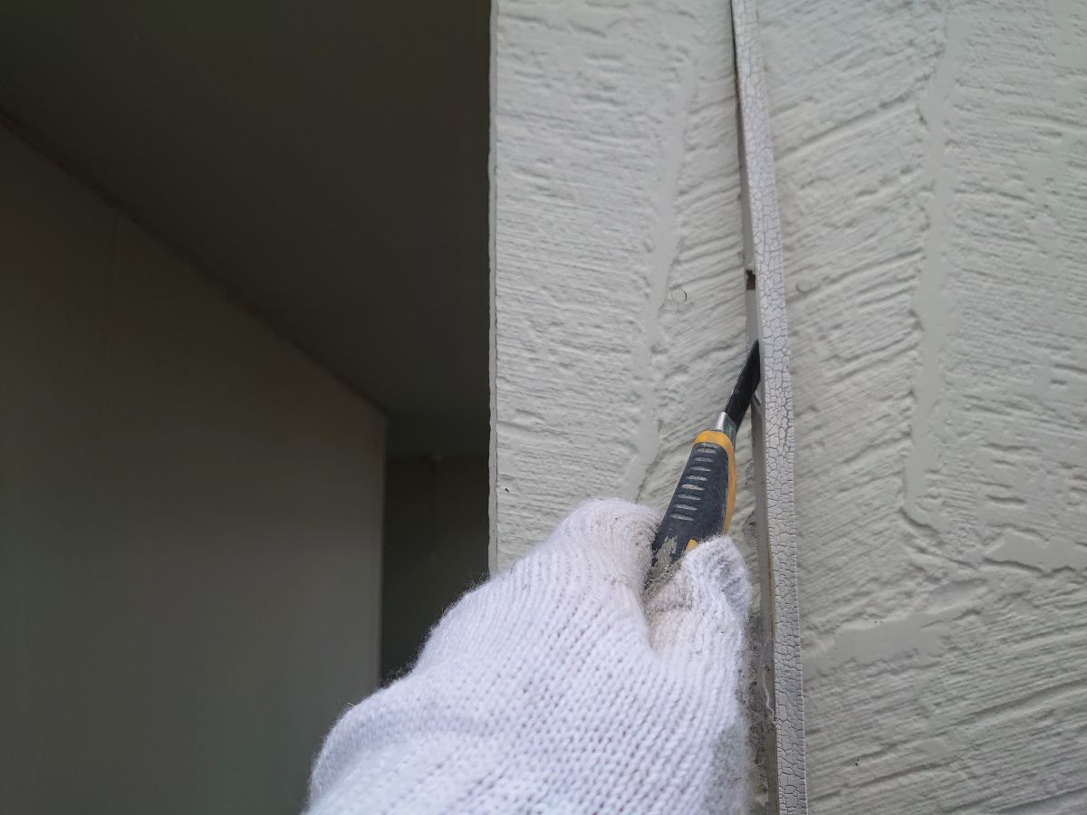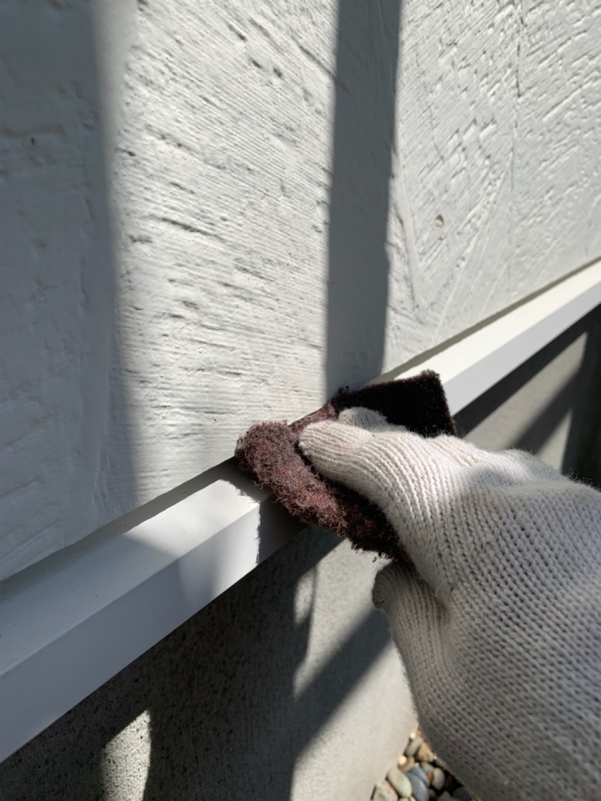 下地処理:外壁材の欠損部をカチオンという補修剤を使って形成しています。