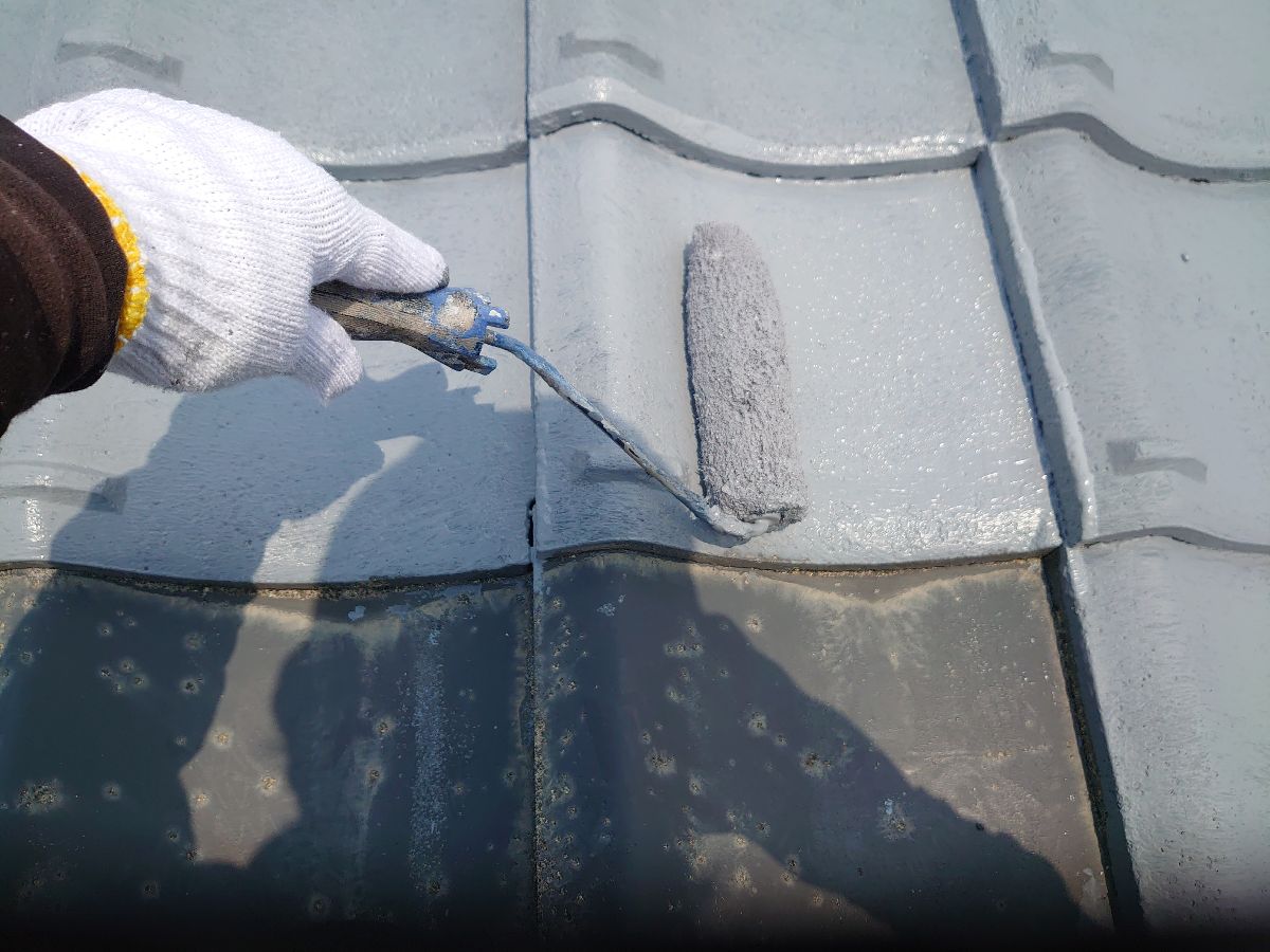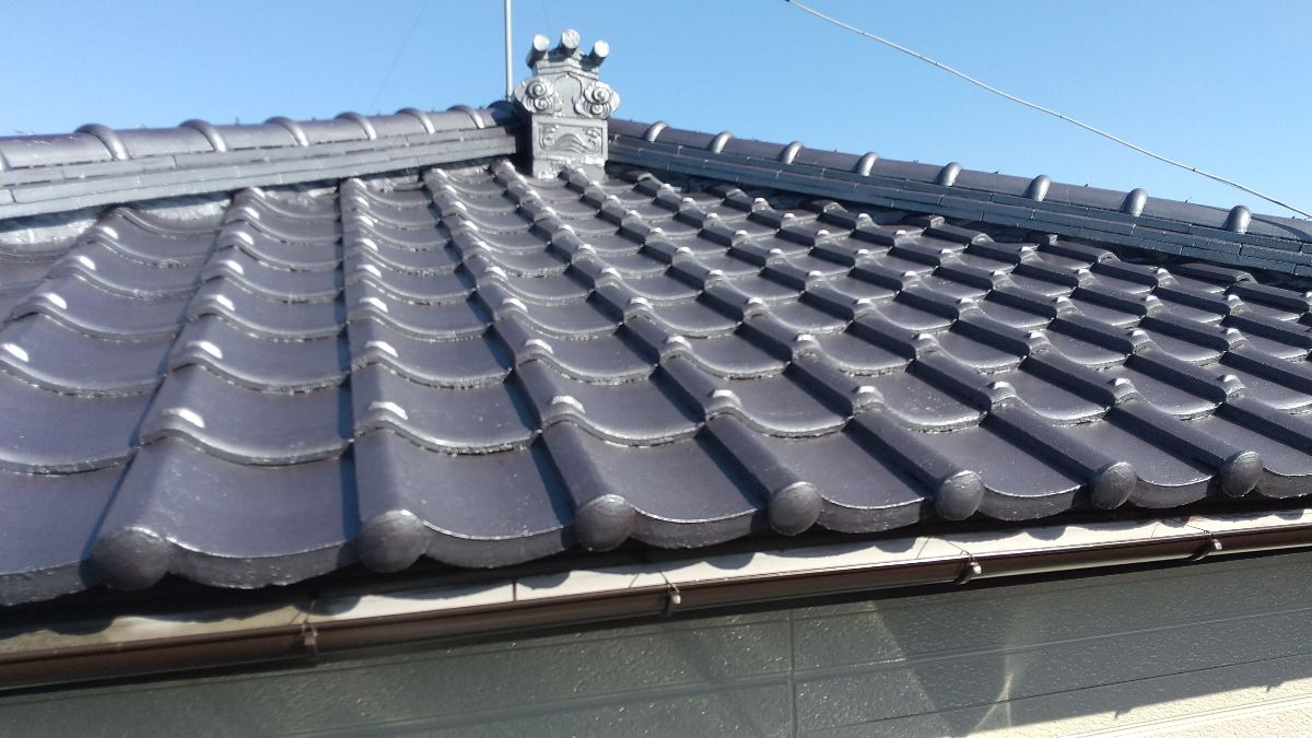 屋根:完了しました。上塗り材はエーエスペイントのSun瓦Sトップを使用しました。