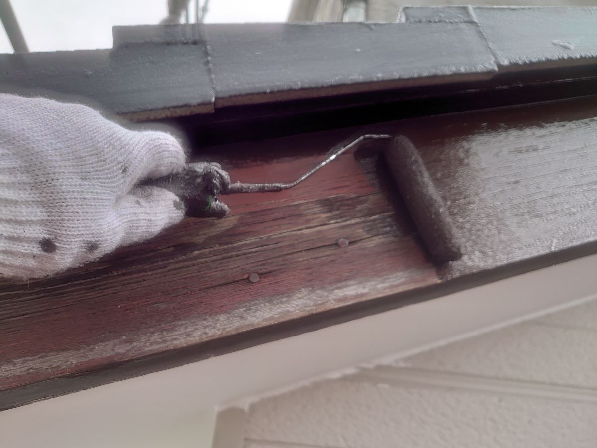 破風:下塗り作業中