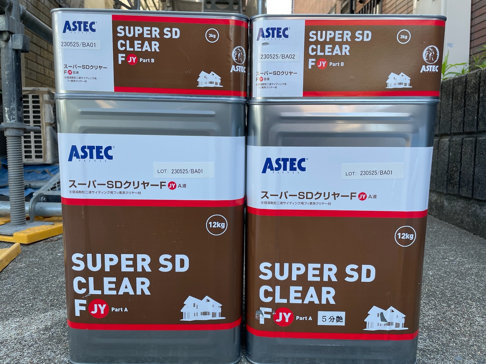 上塗り材はアステックペイントのスーパーSDクリヤーF-JYを使用しました。