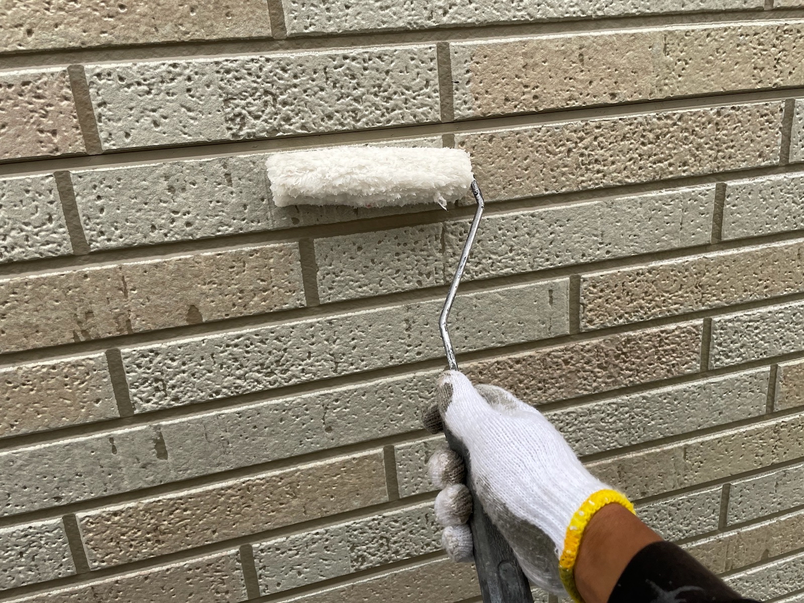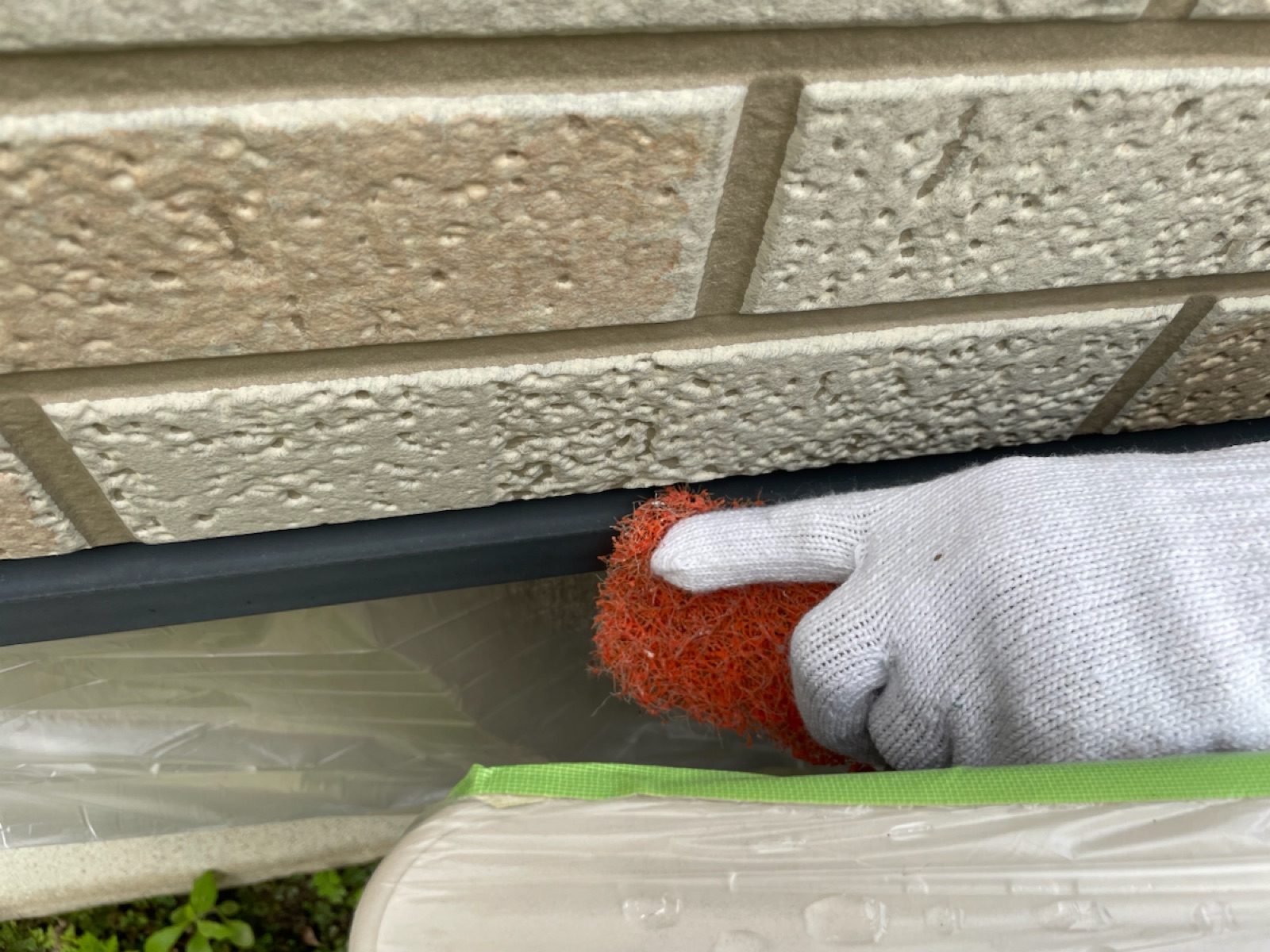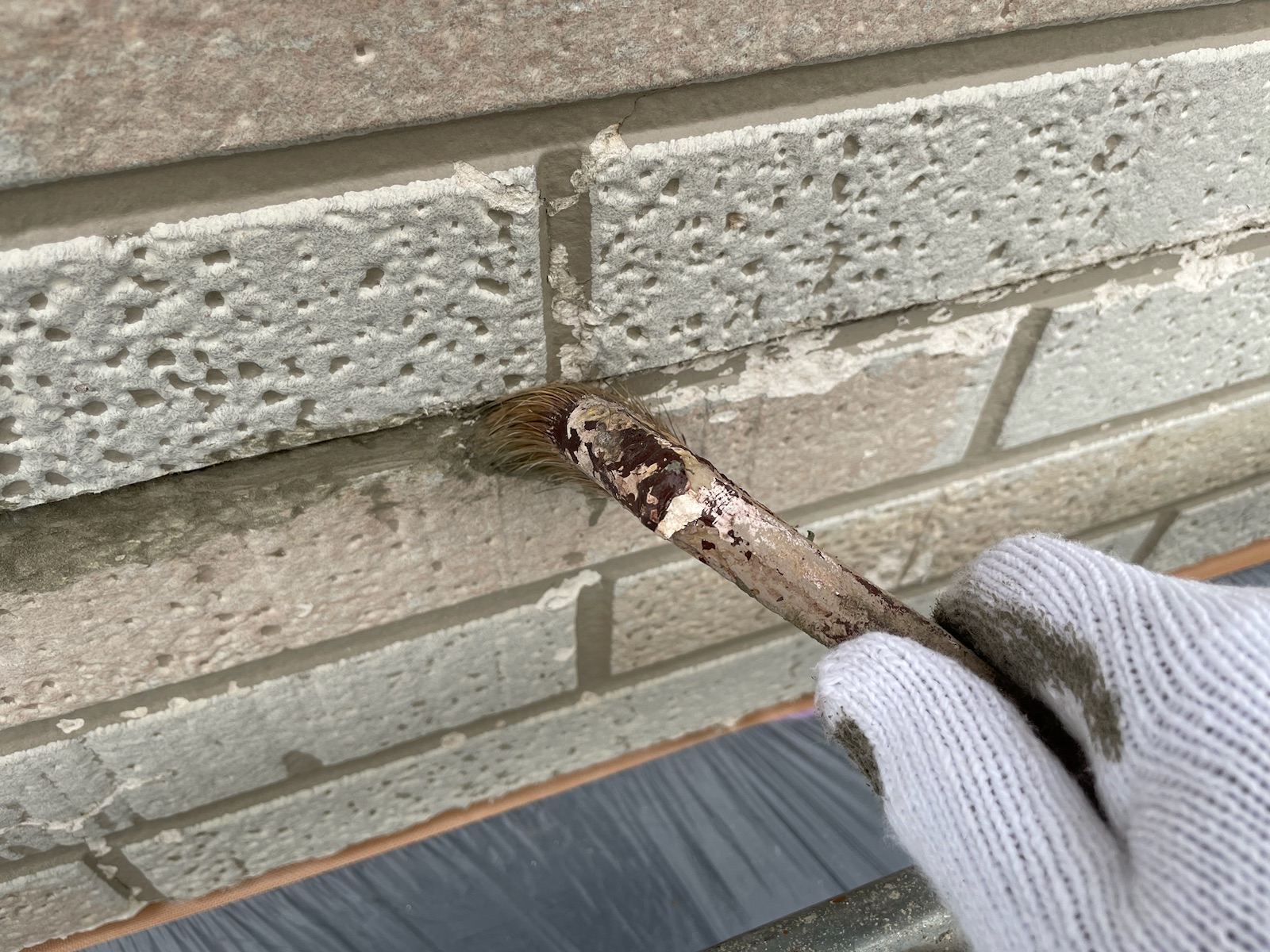 下地処理:外壁材の欠損部をカチオンという補修剤を使って形成しています。